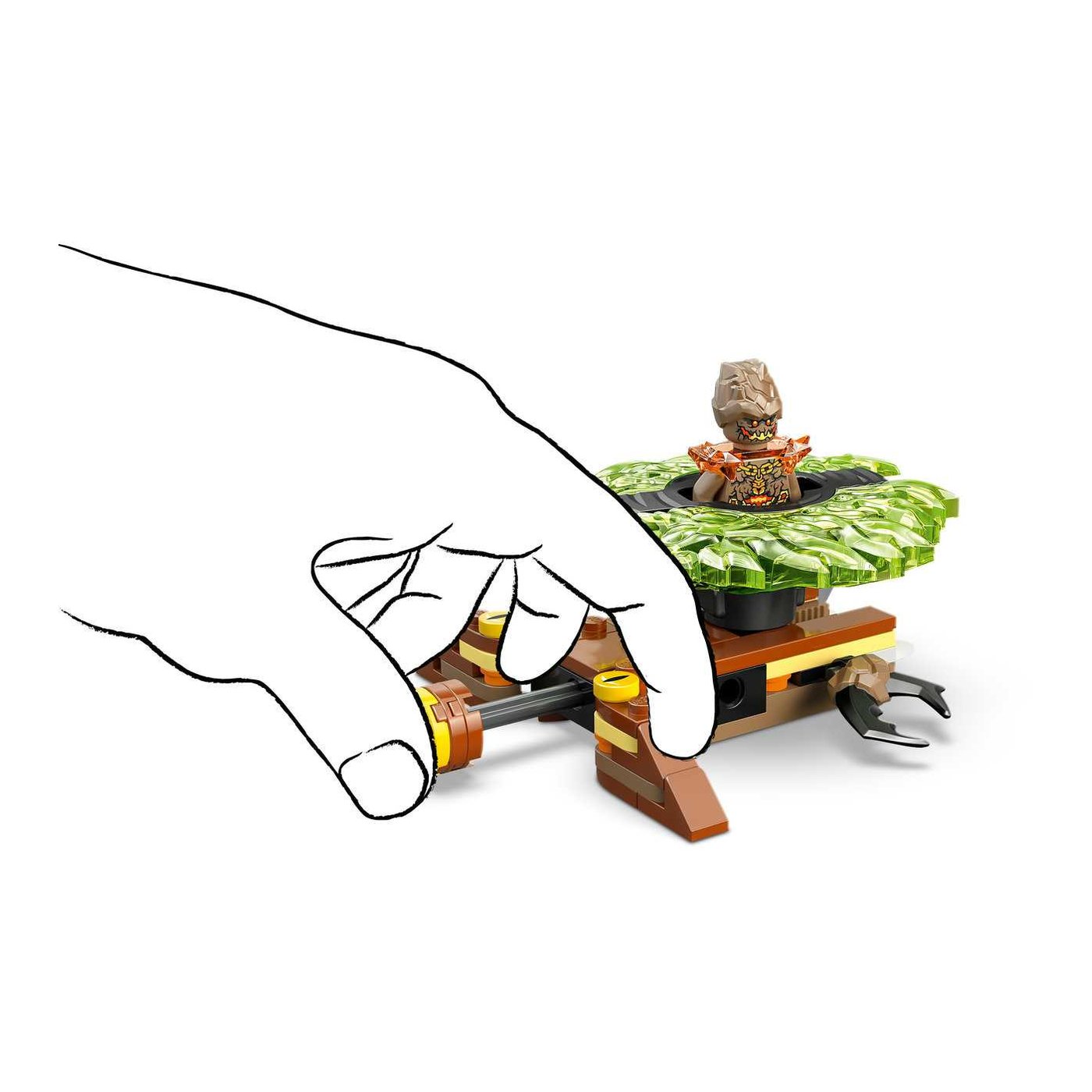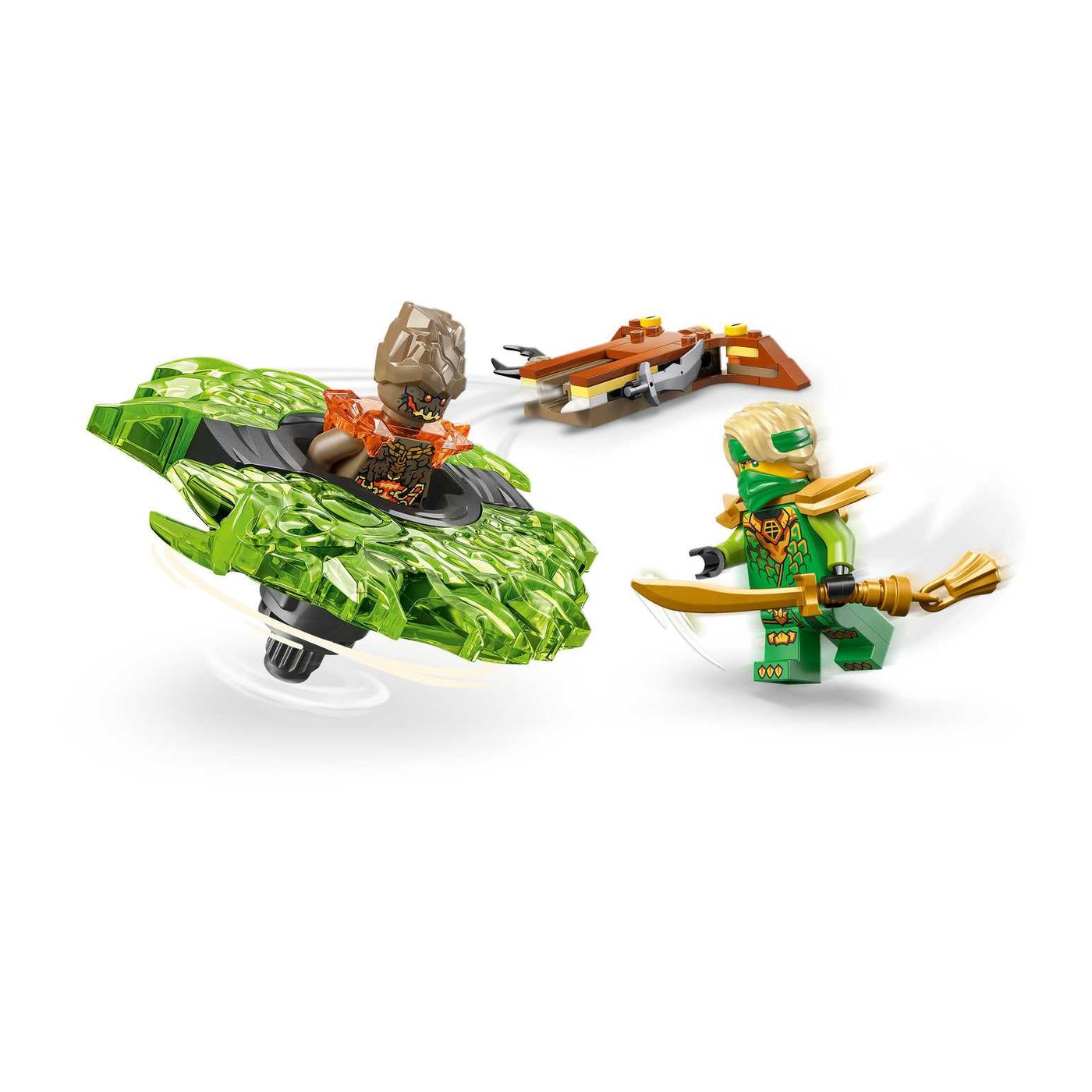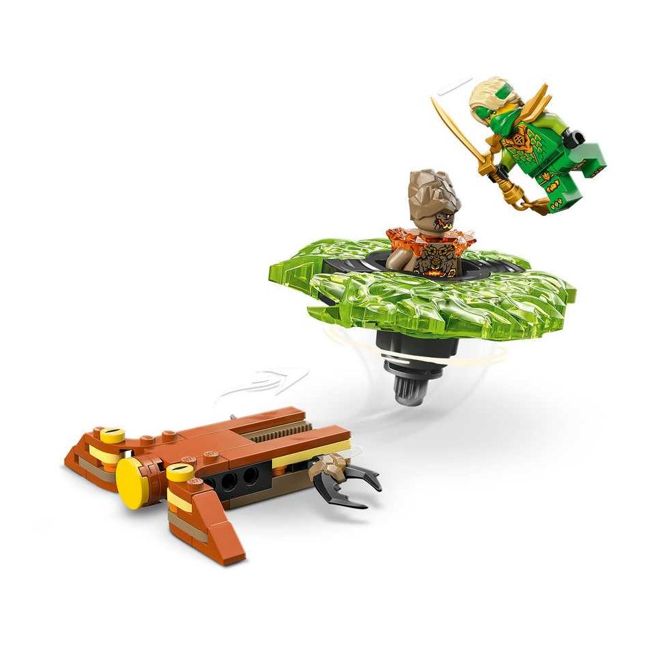 S ovim setom, djeca mogu doživjeti neograničene trenutke uzbuđenja dok pritiskaju gumb za lansiranje i promatraju kako se spinner igračka zavrti velikom brzinom, otpuštajući svoje elementarne moći pri udaru u metu. Set uključuje dvije mini figurice: Lloyda, opremljenog mačem, i Zemaljsko Čudovište koje može upravljati spinnerom. Svaki lik ima svoj oružani dodatak, što dodatno obogaćuje igru i omogućava djeci da kreiraju sve napetije bitke između dobra i zla.