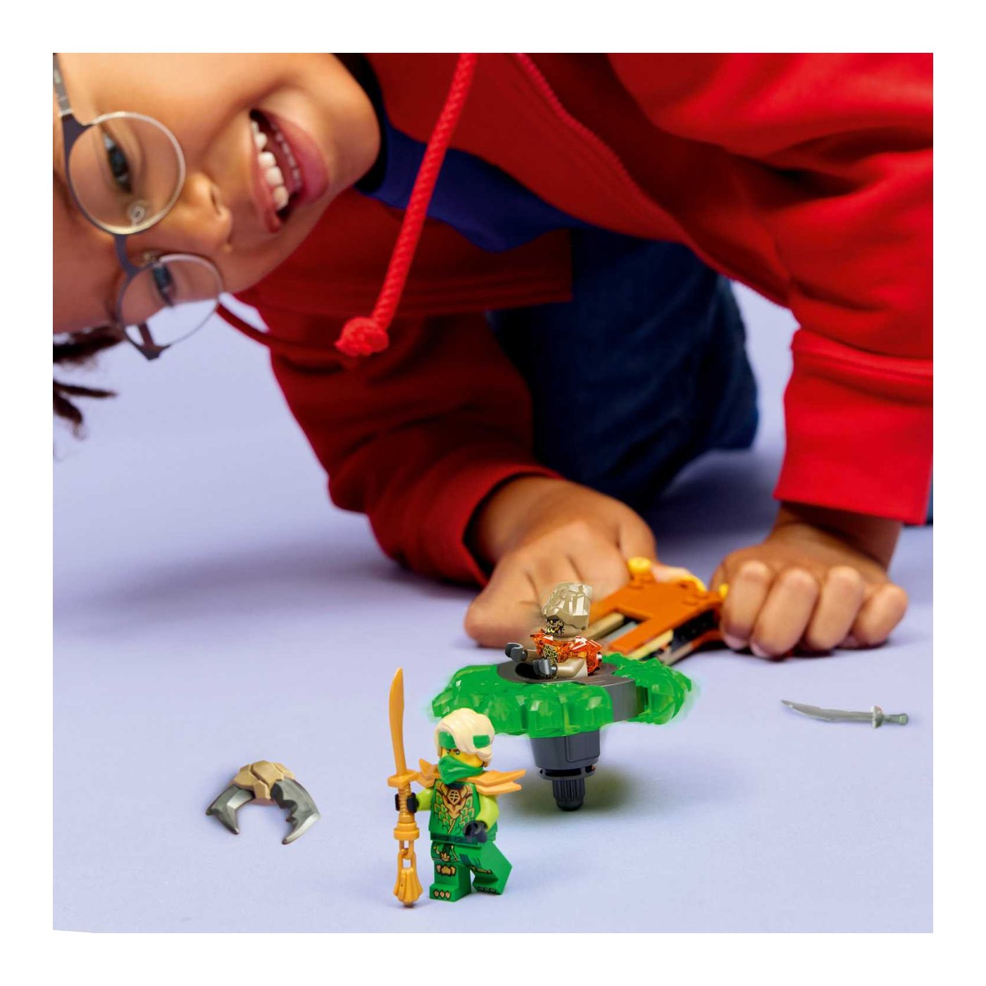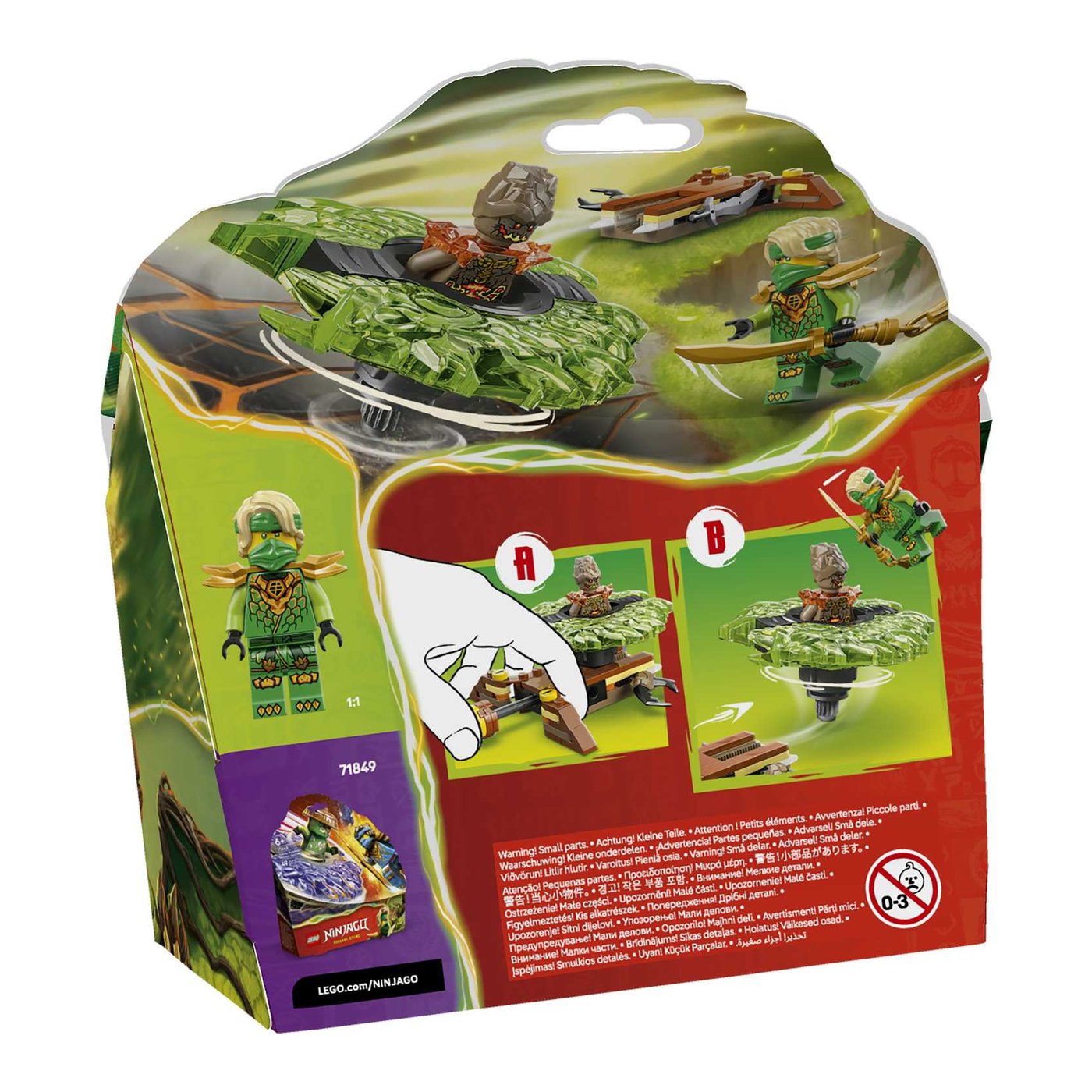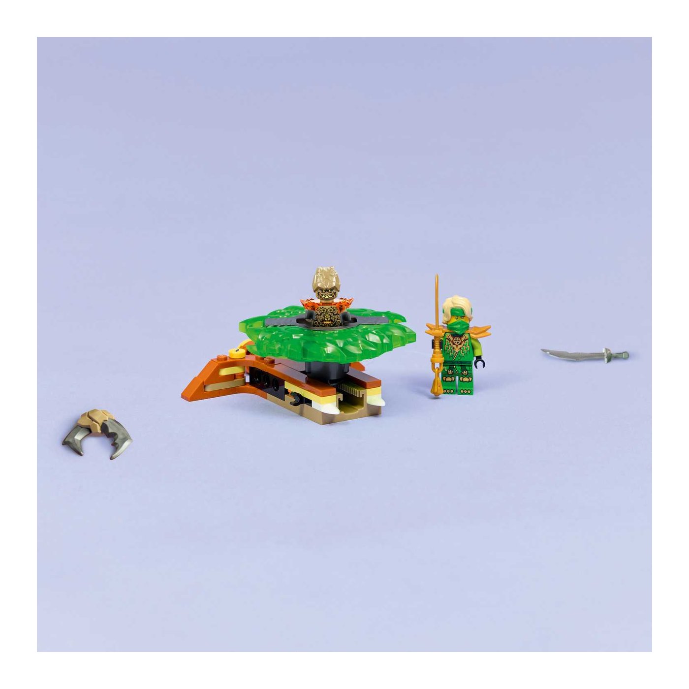 S ovim setom, djeca mogu doživjeti neograničene trenutke uzbuđenja dok pritiskaju gumb za lansiranje i promatraju kako se spinner igračka zavrti velikom brzinom, otpuštajući svoje elementarne moći pri udaru u metu. Set uključuje dvije mini figurice: Lloyda, opremljenog mačem, i Zemaljsko Čudovište koje može upravljati spinnerom. Svaki lik ima svoj oružani dodatak, što dodatno obogaćuje igru i omogućava djeci da kreiraju sve napetije bitke između dobra i zla.