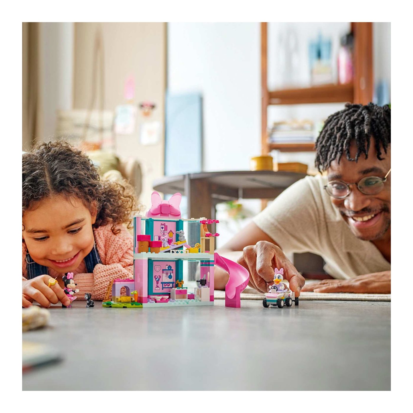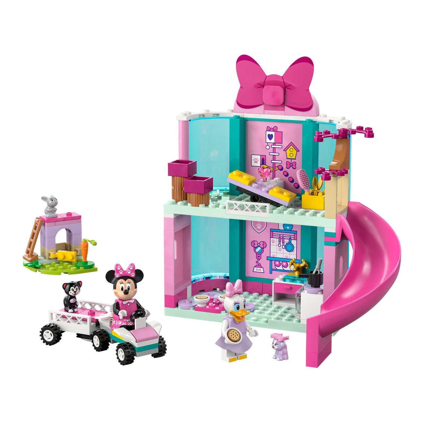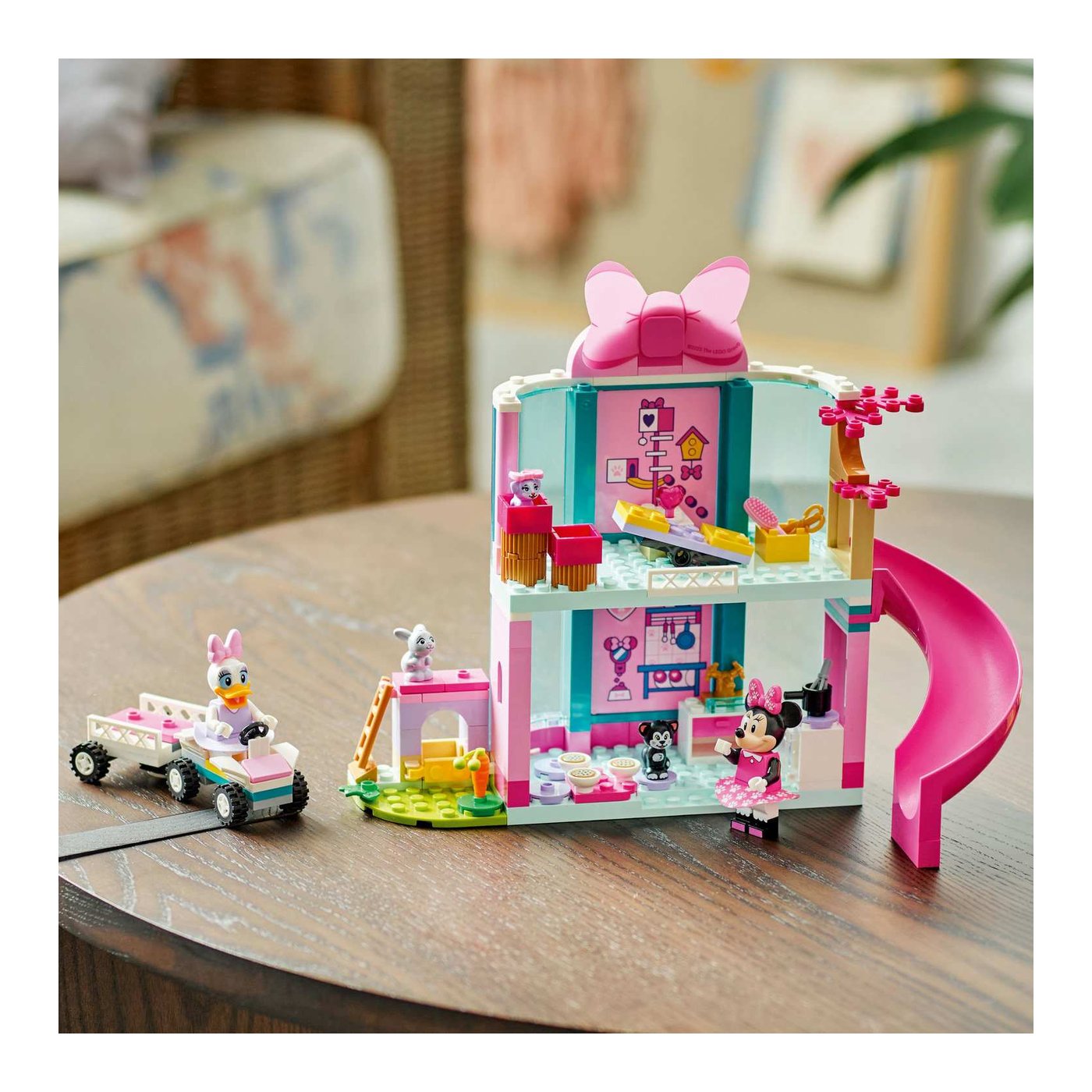 Djeca će se zabavljati i istovremeno razvijati važne vještine dok sastavljaju hotel i auto s prikolicom koristeći 4 početničke kocke. Kroz igru, mališani poboljšavaju svoje motoričke sposobnosti, uče logičko razmišljanje i razvijaju maštu dok stvaraju beskrajne priče s Minnie, Vlatkom i tri životinje – mačkom Figarom, kujicom Creampuff i mamom zečicom.