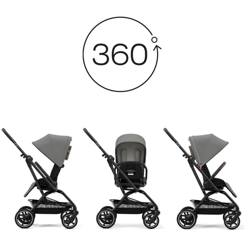 Najvažnija karakteristika ovih kolica je sjedalo koje se može rotirati za 360 stupnjeva, omogućavajući vašem djetetu da gleda u smjeru vožnje ili u smjeru roditelja. Ergonomska pozicija za spavanje omogućava udoban san za vašeg mališana, a XXL sunčana krovna tenda s UPF 50+ zaštitom štiti vaše dijete od sunca. Osim standardnog sjedala, okvir Cybex Eezystw+2 je također kompatibilan s Cybex nosiljkom, Cot S i Cocoon S, čime se stvaraju četiri mogućnosti putovanja.