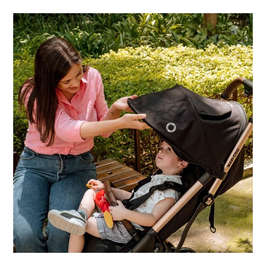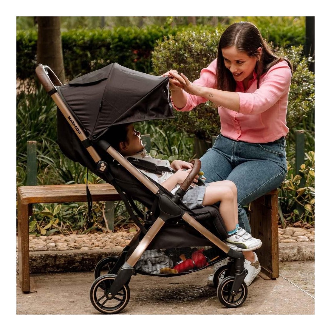 Želja: Zamislite svoje dijete kako udobno sjedi u prostranom i mekanom sjedištu, zaštićeno velikom sjenilom koje blokira UV zrake. Bez obzira idete li užurbanim gradskim ulicama ili neravnim stazama, Eva3 osigurava glatku vožnju zahvaljujući svojoj 4-kotačnoj suspenziji. Osim toga, mogućnost pričvršćivanja Maxi-Cosi autosjedalice pruža dodatnu fleksibilnost pri prijelazu iz automobila na pločnik.