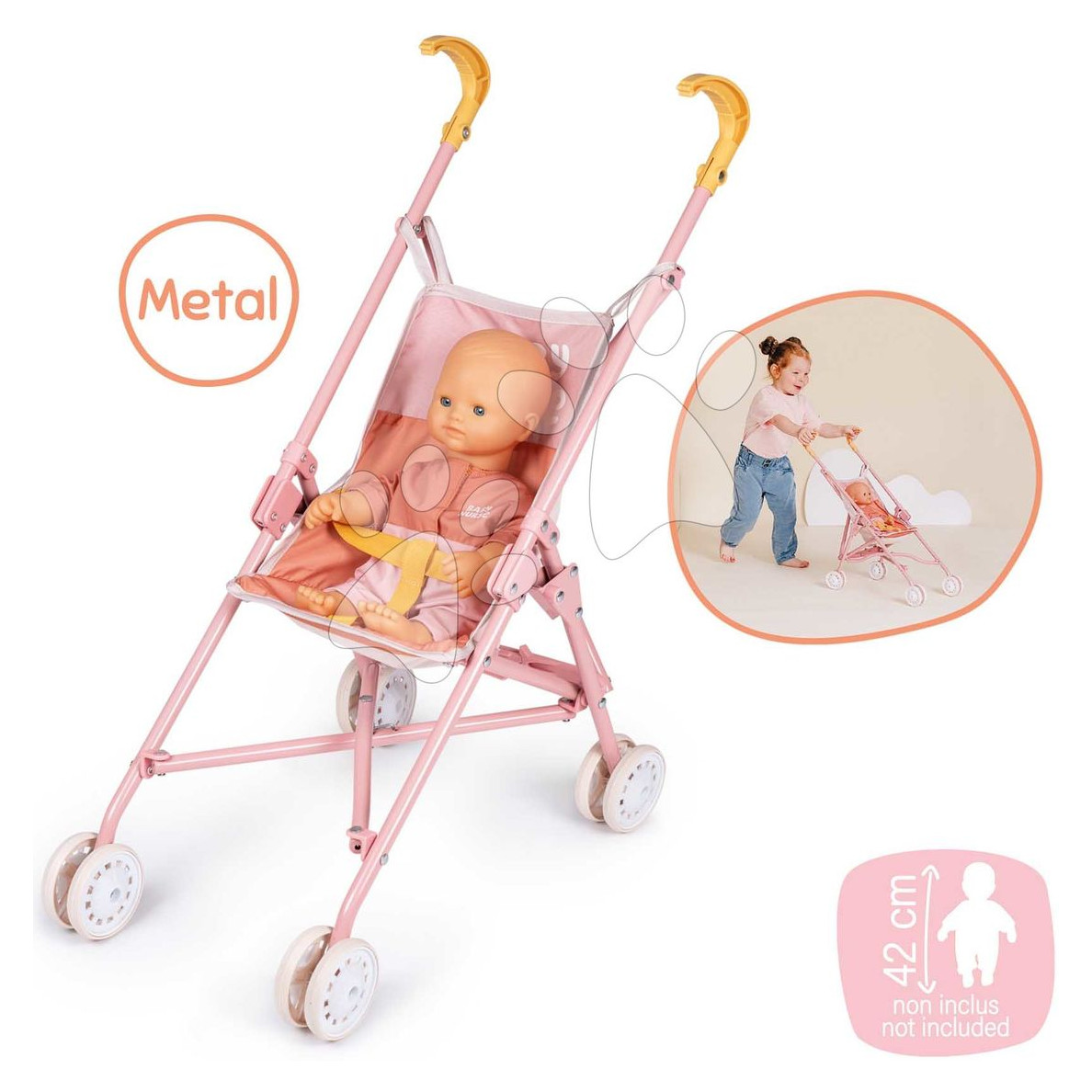 Praktična i lagana, kolica su prilagođena dječjim rukama, što znači da ih mališani mogu lako gurati bez pomoći odraslih. Posebno su korisna za razvoj motorike i osjećaja odgovornosti, jer mali roditelji uživaju vodeći brigu o svojim omiljenim lutkama. Svakodnevna igra s ovom igračkom potiče maštu i omogućuje stvaranje najrazličitijih priča kroz igru uloga.