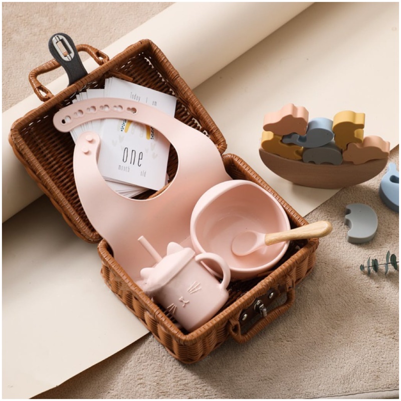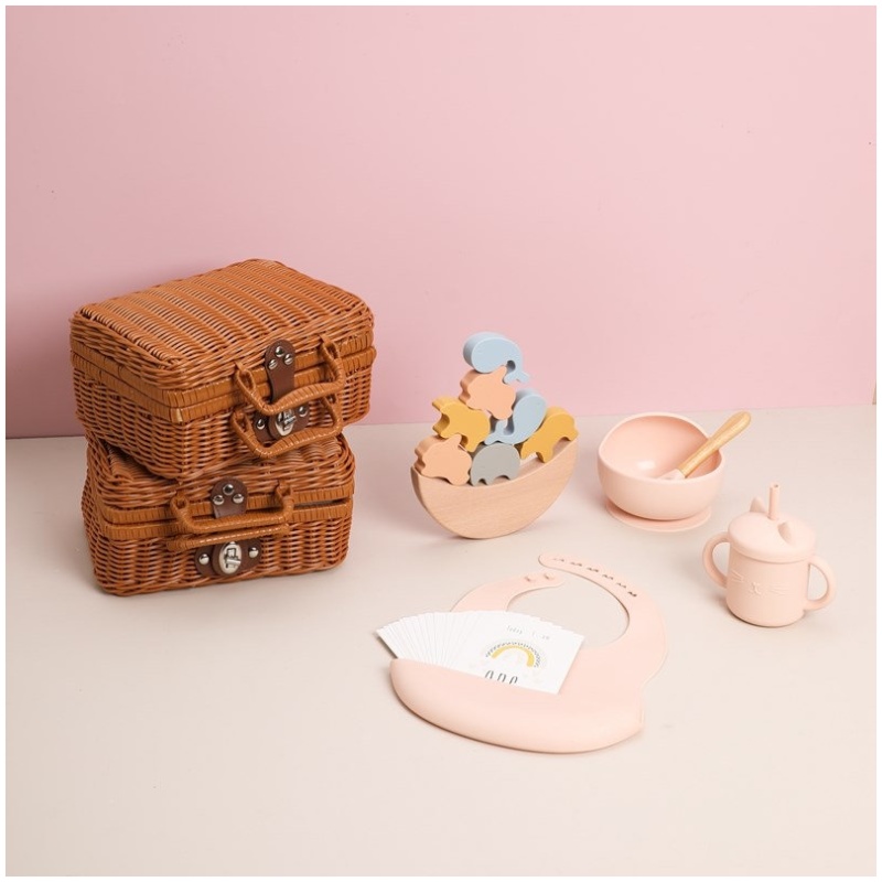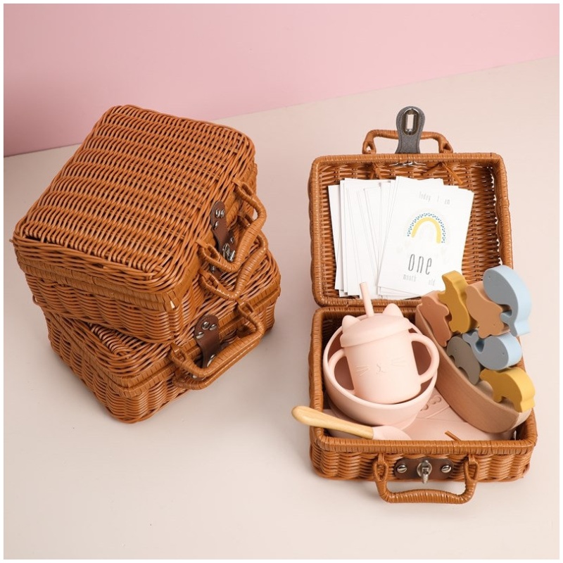 Lagana i prenosiva košara u kojoj se mogu smjestiti svi navedeni elementi. Košara omogućuje jednostavno nošenje i pohranu piknik seta kada se ne koristi. Kasnije može poslužiti i kao uspomena, gdje možete sačuvati omiljene stvari vašeg djeteta, poput omiljene igračke, malih odjevnih predmeta ili fotografija najljepših trenutaka.