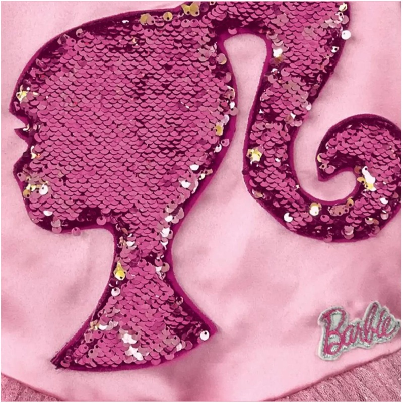 Haljina je u prekrasnoj ružičastoj boji koja će oduševiti svaku malu djevojčicu. Ukrašena je sjajnim šljokicama koje daju poseban sjaj i glamur. Na suknji haljine nalazi se uzorak Barbie i zvijezda koji će privući poglede i stvoriti osjećaj bajkovite atmosfere.