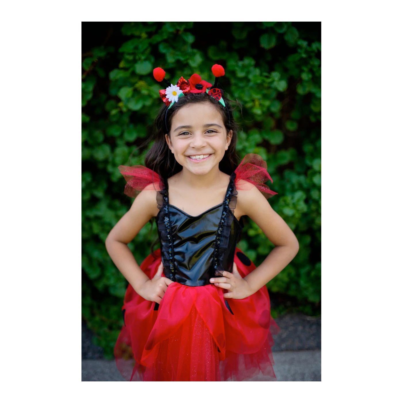 Otkrijte radost i čaroliju bezbrižnog djetinjstva uz naš set Bubamara Haljina i Ukras za Kosu. Zamislite kako vaš mališan u dobi od 3 do 6 godina s osmijehom i oduševljenjem istražuje svijet oko sebe, odjeven u ovu divnu haljinu. Dizajnirana s ljubavlju, haljina se sastoji od elegantnog crnog bodija koji diskretno sjaji zahvaljujući crvenom dragom kamenu, dok raskošna crvena suknja s crnim točkicama podsjeća na šarene vrtne bubamare. Dodatni detalj koji izaziva oduševljenje je ukras za kosu s antenama, koji potiče dječju maštu i čini igru još zabavnijom.
