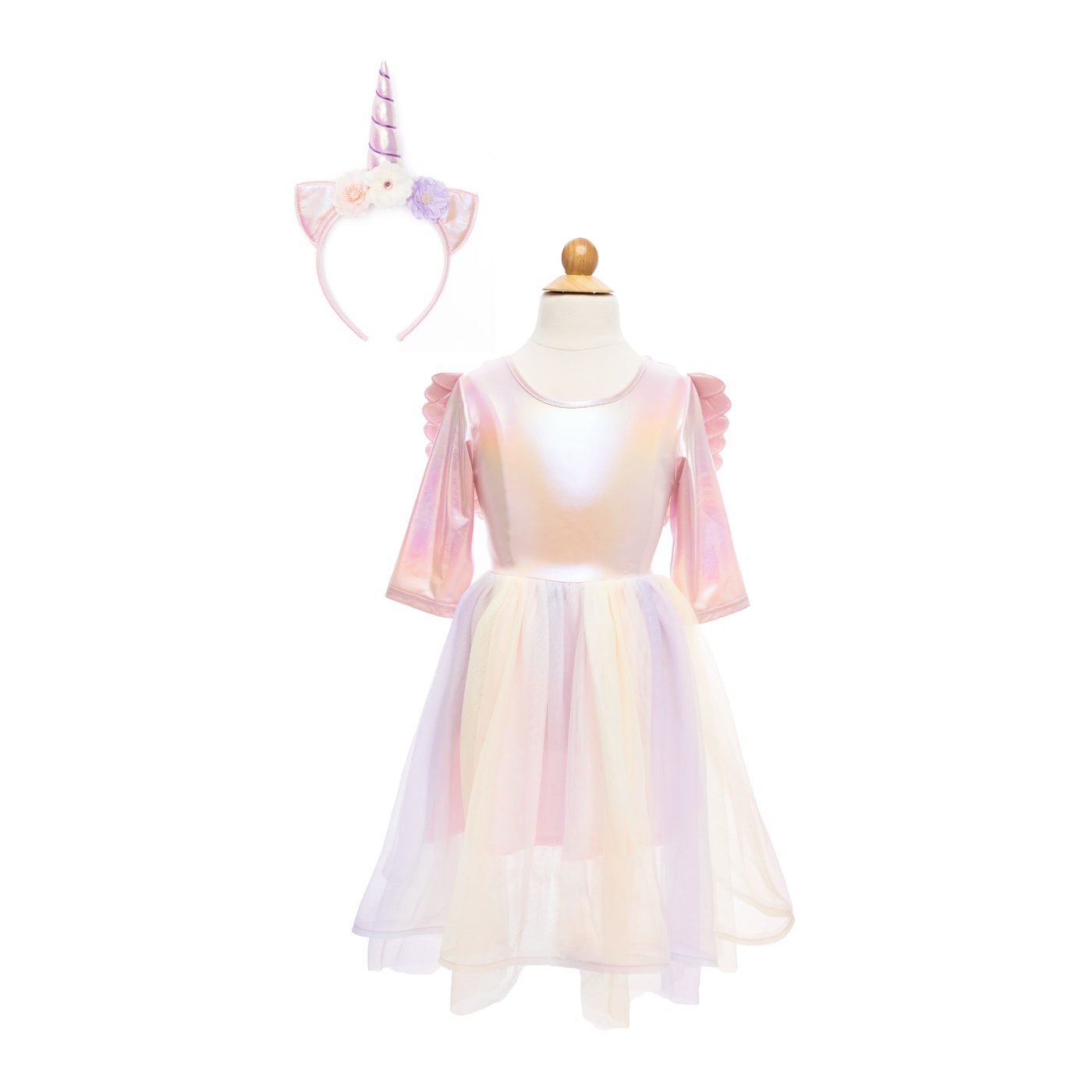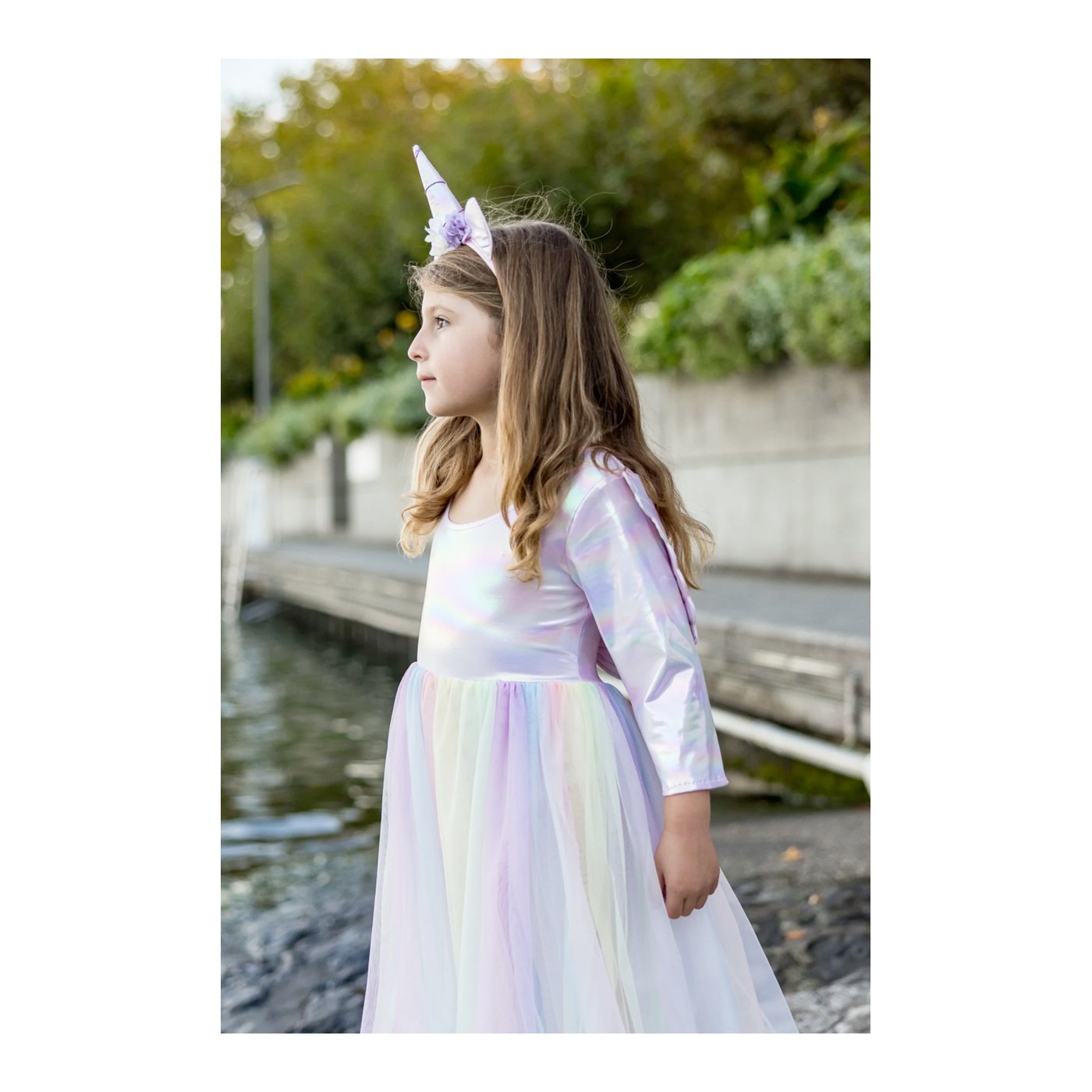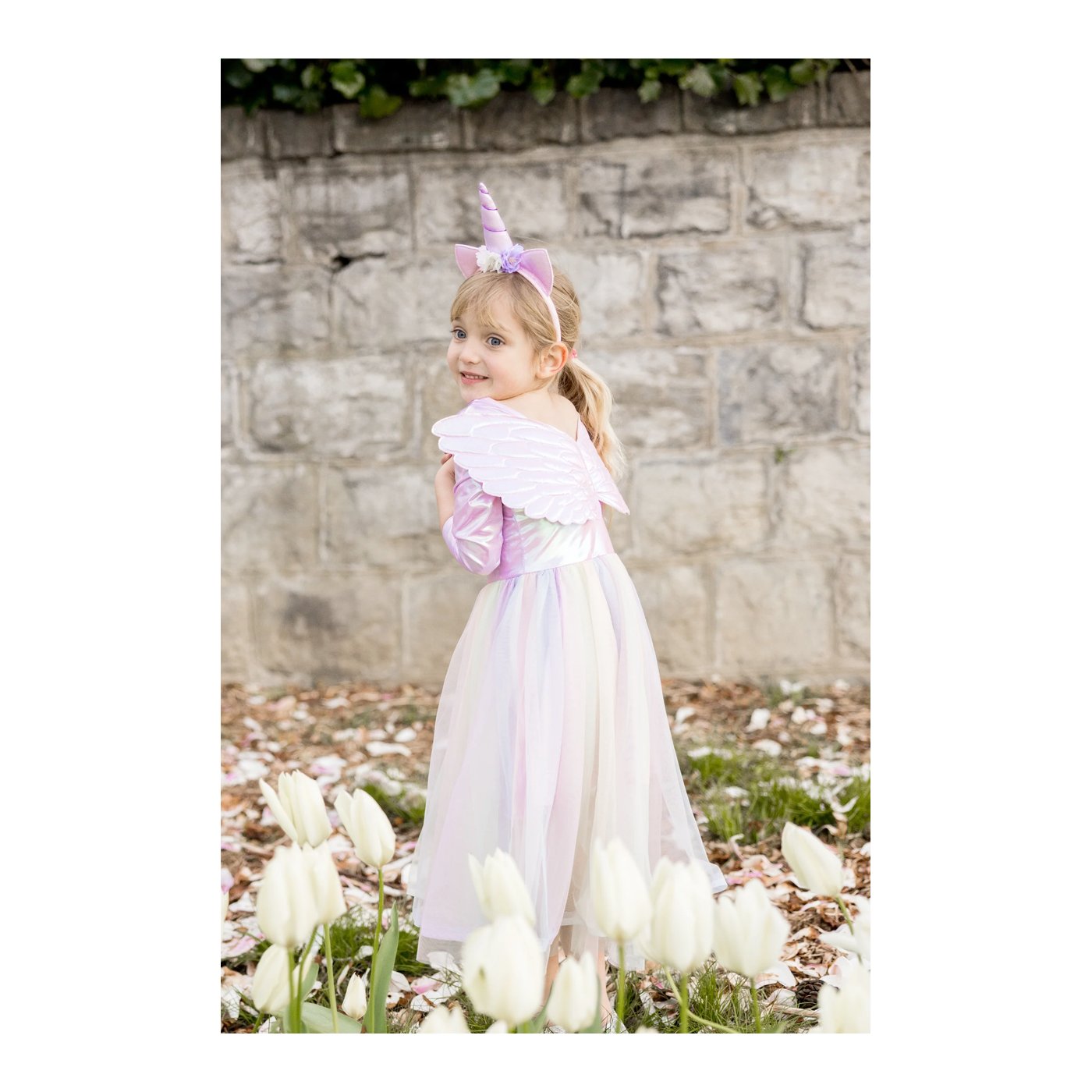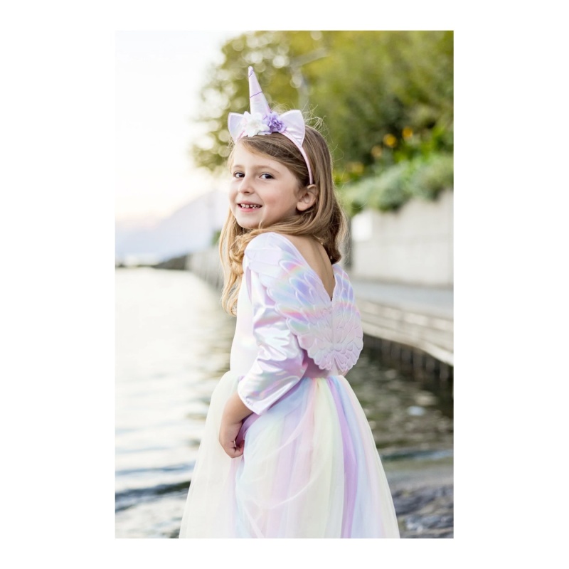 Pozdrav, dragi roditelji i mali istraživači mašte! Predstavljamo vam kostim set Jednorog 31015 – savršenu kombinaciju za vašu malenu princezu koja sanja o čarobnim pustolovinama. Ova prekrasna Iridescent Alicorn haljina, s čarobnim krilima i trakom za kosu, stvorena je kako bi vaša djevojčica zakoračila u svijet bajki s osmijehom na licu.