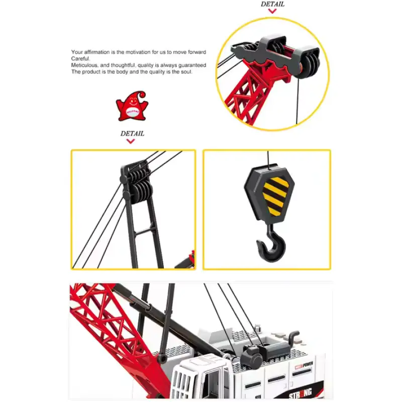 Kran model igračke dolazi u lijepom izložbenom pakiranju, što ga čini idealnim poklonom za rođendane ili druge posebne prigode. Sa svojim certifikatima kvalitete, možete biti sigurni da je ova igračka sigurna i pouzdana.