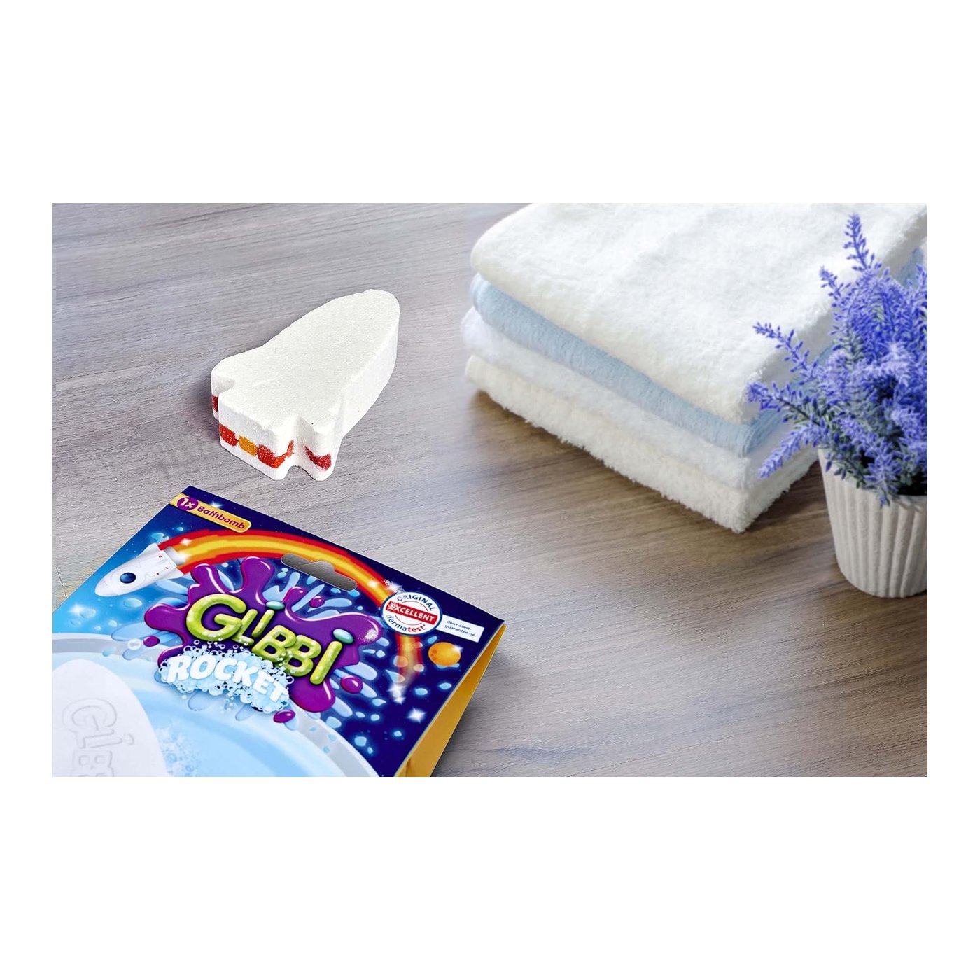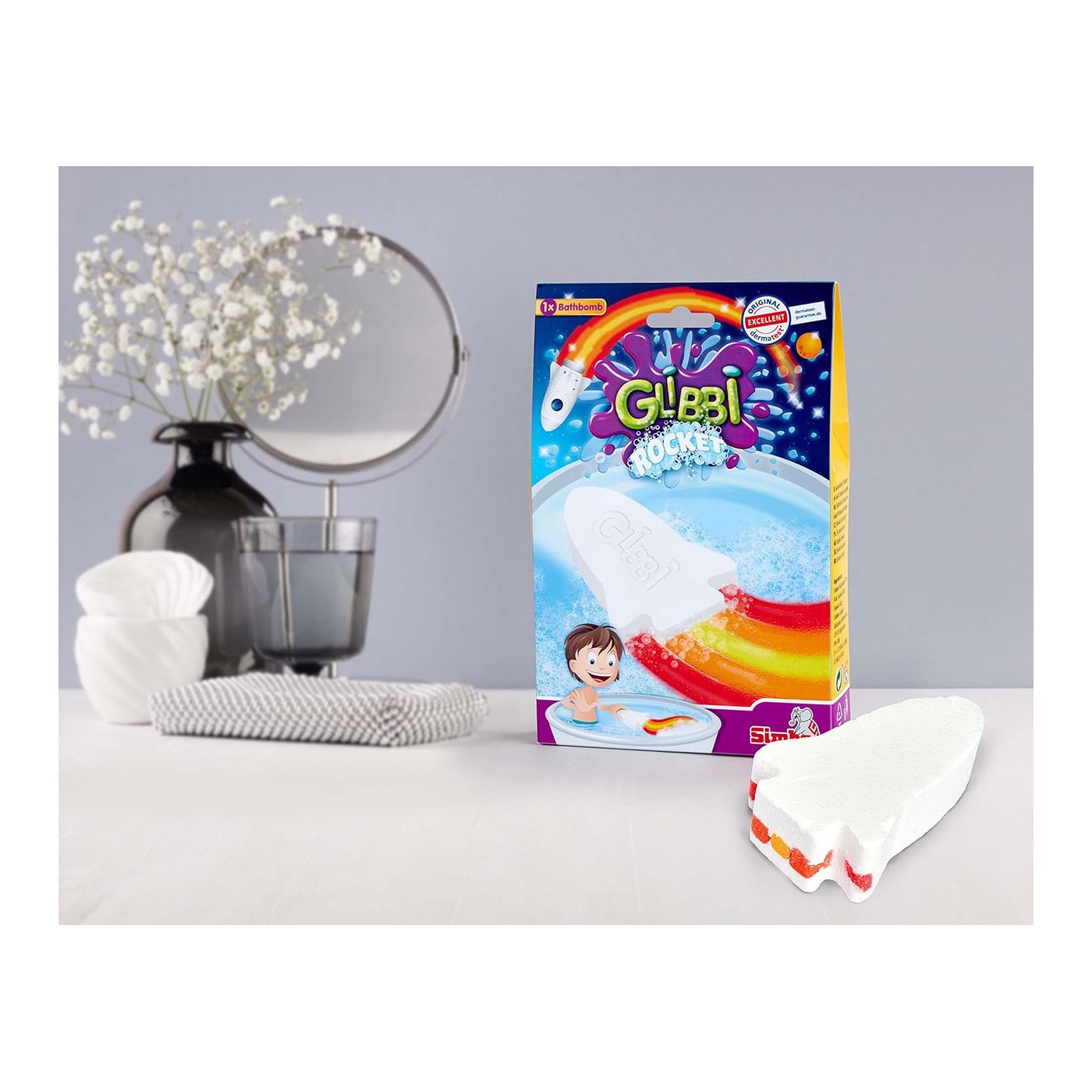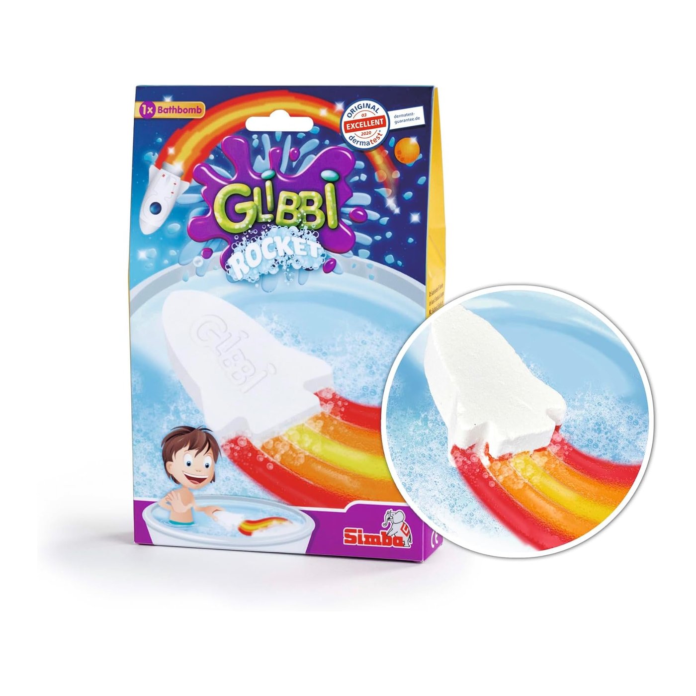 Glibbi Rocket 105953541 transformira kupanje u šarenu avanturu uz spektakularni prikaz boja. Dermatološki testiran, siguran za dječju kožu.