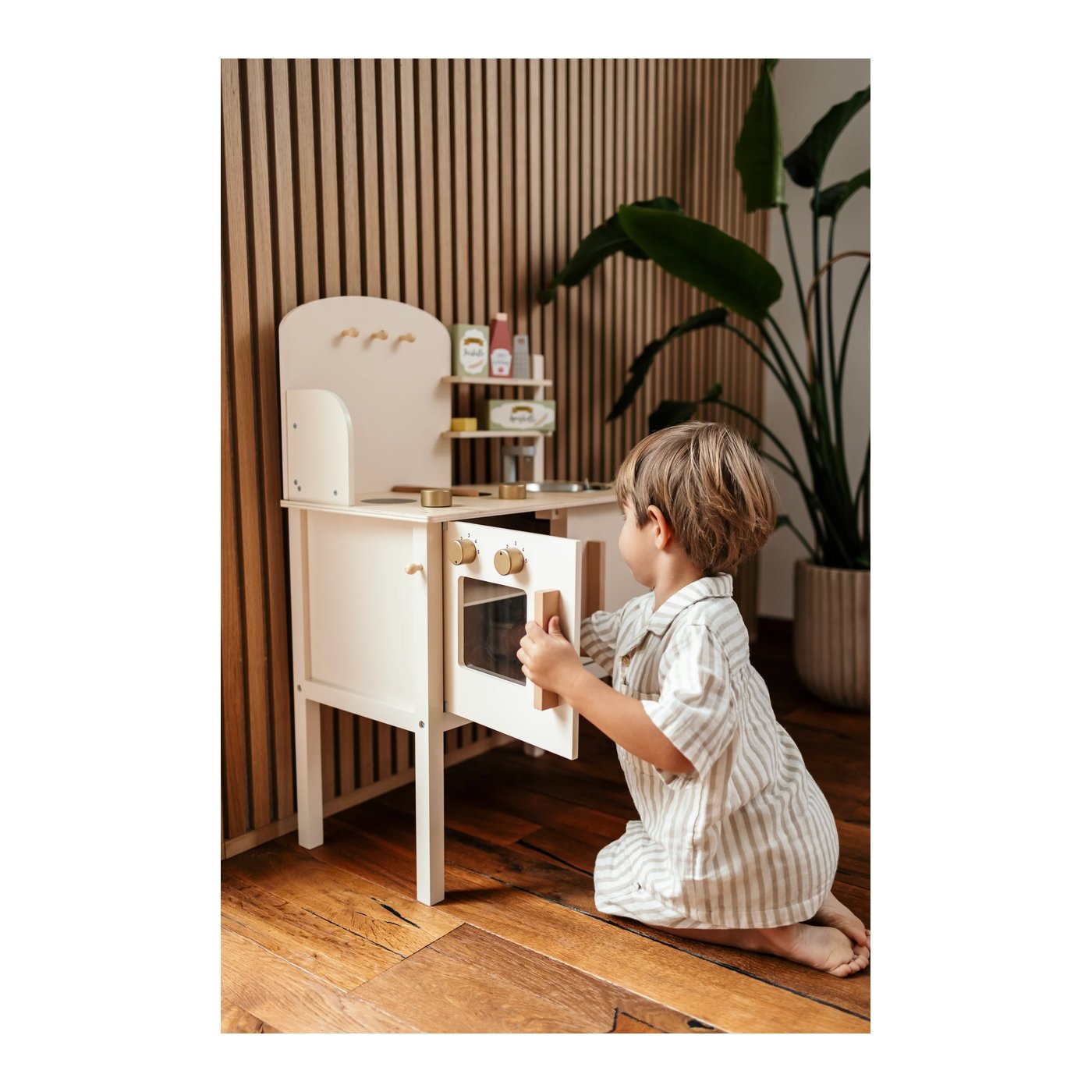 Što Jabadabado Kuhinja Cream W7251 čini zaista posebnom? Njena jedinstvena prodajna točka leži u detaljima koji potiču kreativnu igru. Opremljena je sudoperom, štednjakom i pećnicom, a dolazi s loncem, tavom i tri kuhinjska pribora. Sve to omogućava djeci da urone u svijet kuhanja i stvaranja bez granica. S pozadinskom pločom za pisanje, mališani mogu svakodnevno objavljivati svoj jelovnik, stvarajući dojam prave, male kuhinje.