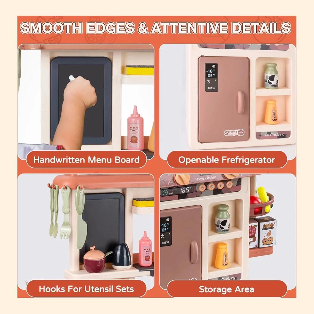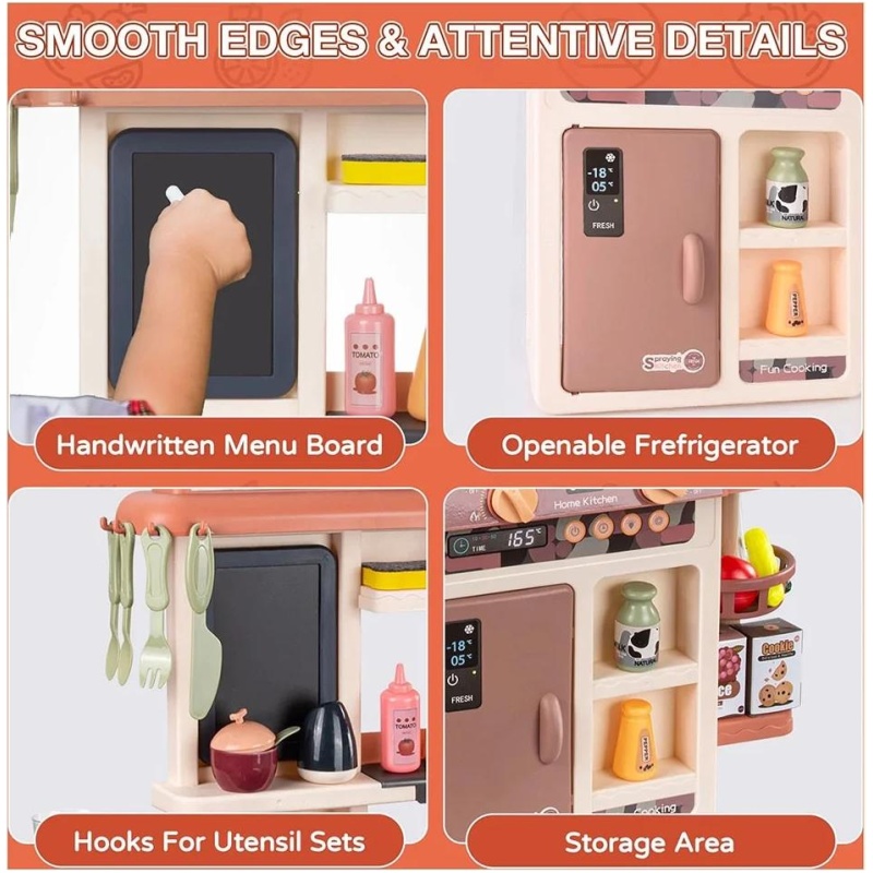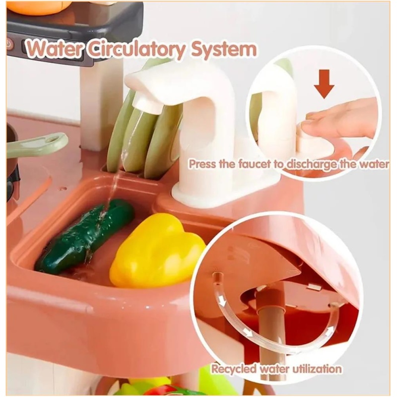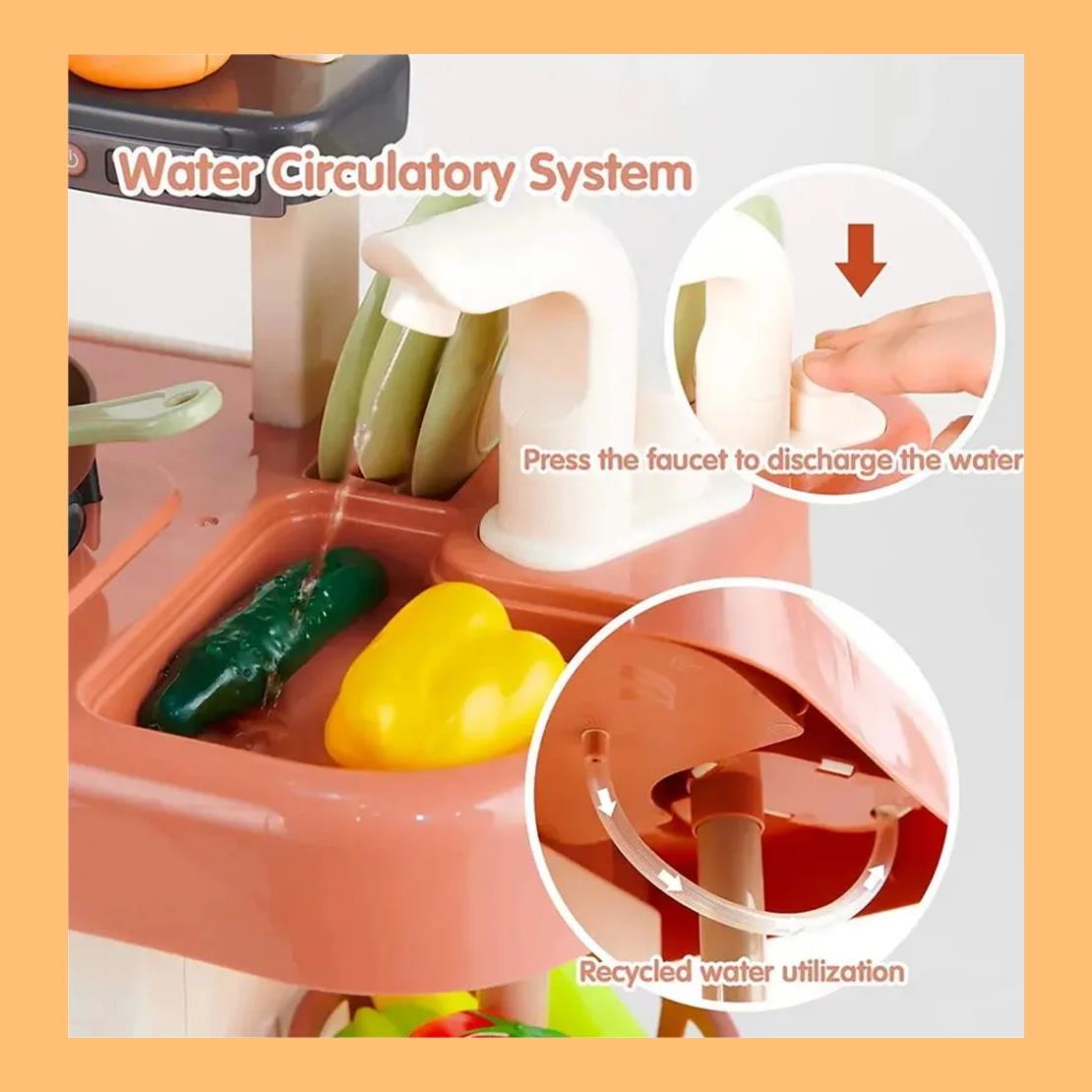Jedna od najzanimljivijih značajki ove igračke je sustav za cirkulaciju vode. Pritisnite slavinu i voda će početi teći. Vaše dijete može slobodno prati povrće, voće, posude i druge dodatke u sudoperu. Ali to nije sve – nakon igre, vaše dijete može spremiti sve kuhinjske dodatke na svoje mjesto, razvijajući naviku organiziranja stvari i održavajući sobu urednom. Ova igračka također pomaže u razvijanju dječje motorike i osjećaja odgovornosti.