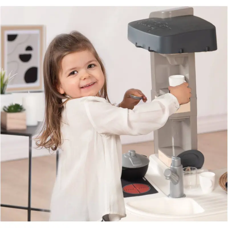 SUpusti se u svijet mašte sa SMOBY Kuhinjom Tefal Studio i pusti svoju malu kuharsku zvijezdu da zablista. Ova izvanredna dječja kuhinja kombinira igru uloga sa realističnim funkcijama te pruža nezaboravno iskustvo kuhanja za male gurmane.