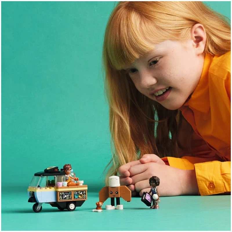Kroz ovu igračku djeca će imati priliku stvoriti vlastite priče dok pomažu LEGO Friends liku Julesu da posluži kupce iz malog vozila. Sadrži razne dodatke poput kroasana, makarona, keksa, posude za kekse, aparata za kavu, šalice kave, vruće čokolade i šalice čaja, te novčića i knjige za Aliju i kost za LEGO Friends psa Aira.