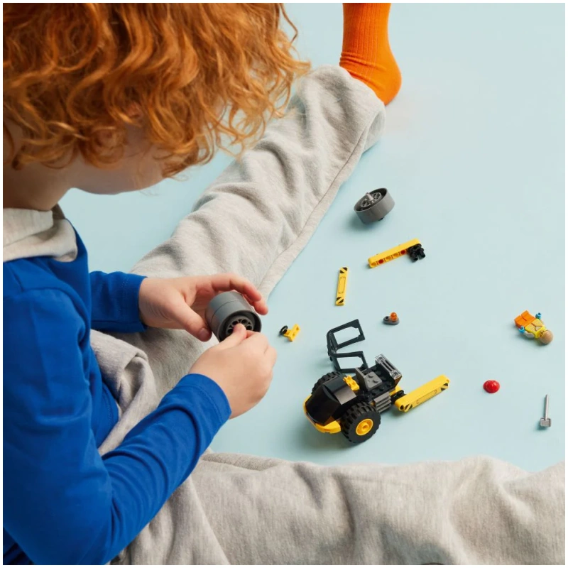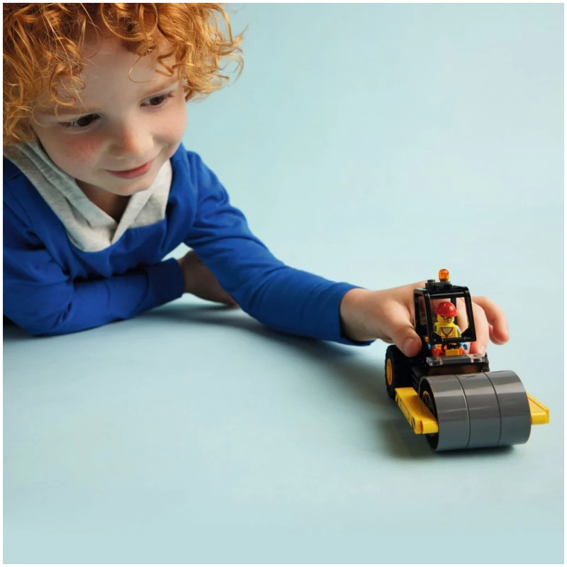 U kutiji se nalazi sve što djeca trebaju za izgradnju valjka, uključujući vozačku kabinu i svjetlosno upozorenje. Također je uključena i minifigura građevinara s lopatom i zaštitnom kacigom.