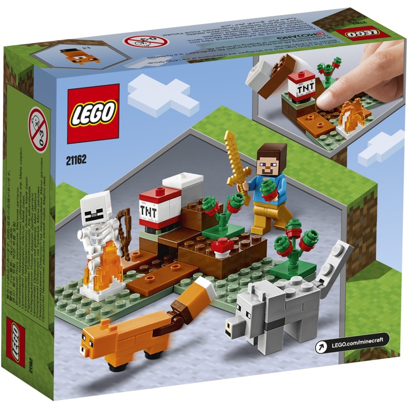 Zabavni komplet ima značajke i figure iz Minecrafta koje igrači mogu slagati, uređivati i uživati u njima, pa potiče djecu da se maknu od računala i prenesu uzbuđenje iz Minecrafta u stvarni svijet! Djeca stvaraju vlastite pustolovine s 4 omiljena lika iz Minecrafta! Pomozite djeci da oslobode svoju kreativnost sa Steveom, kosturom, vukom i novom figurom lisice iz siječnja 2020. iz Minecrafta. Treba se popeti na snježne planine, pojesti crvene bobice i potpaliti logorsku vatru, a onda i tražiti dragocjene rude u ledenoj Tajgi. No akcija i pustolovine uskoro će pomutiti planove! Odvedite igrače Minecrafta na potpuno novu dimenziju uzbudljive igre! Kompleti iz serije LEGO Minecraft omogućuju djeci beskrajnu samostalnu igru. Uz autentične biome iz Minecrafta i popularne akcijske figure nikad neće htjeti ostaviti igračku!