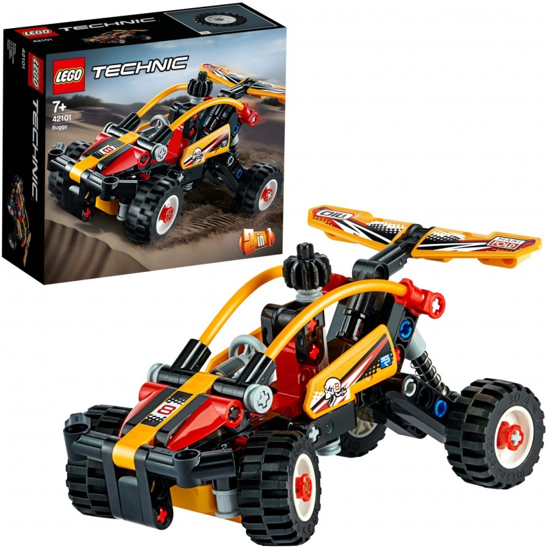 Djeca dobivaju dvostruku zabavu uz komplet LEGO® Technic (42101) Buggy. Neka mladi umovi dobiju krila dok glume kako jure preko pješčanih dina u buggyju. No to nije kraj zabave! Model buggyja može se pretvoriti u elegantni trkaći auto, pa djeca mogu sudjelovati u još više pustolovina. LEGO komplet s mnogo skrivenih detalja Moderna kombinacija boja? Ovdje! Naljepnice u obliku lubanje? Ovdje! Funkcionalno upravljanje i ovjes? Naravno! Ako tražite akcijske igračke s mnogo elemenata koje će djeca obožavati, ovaj nevjerojatni komplet ima sve što trebate. Igračke za slaganje uz koje djeca razvijaju nove vještine Kompleti za slaganje iz serije LEGO Technic savršeni su za obožavatelje LEGO kocaka koji traže novi izazov. Vozila izgledaju i funkcioniraju kao prava, pa će djeca uživati u slaganju modela i igri njima. U svakom kompletu nalaze se tiskane upute, ali postoji i novi način sastavljanja modela auta uz priručnik Instructions PLUS, dostupan u aplikaciji LEGO Life. Interaktivni priručnik ima alate za približavanje i rotiranje kako bi i mlađa djeca mogla složiti ovu fora inženjersku igračku. LEGO djelovi:117