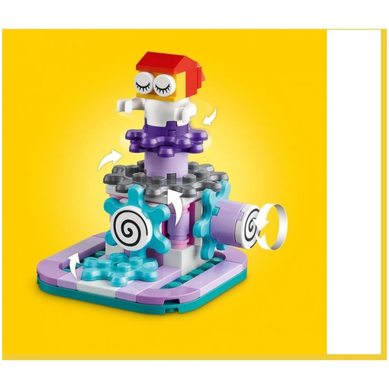 Što se nalazi u kutiji? – Djeci je sve što im je potrebno za izradu okretajuće balerine, helikoptera s vrtložnim rotorima, jabuke s iskačućim crvom i još mnogo toga, plus puno LEGO kockica za kreativnu izgradnju.