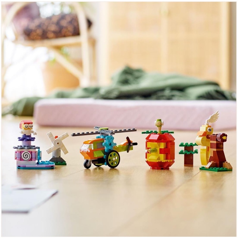 Izgradi LEGO modele s različitim funkcijama – LEGO Classic Kocke i Funkcije (11019) set dolazi s raznobojnim LEGO kockama i 7 minijaturnih modela s funkcijama pokretanja pomoću zupčanika kako bi potaknuo zabavu.