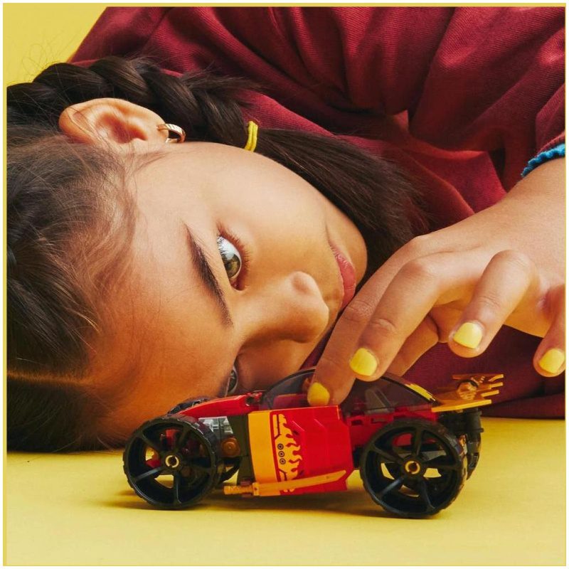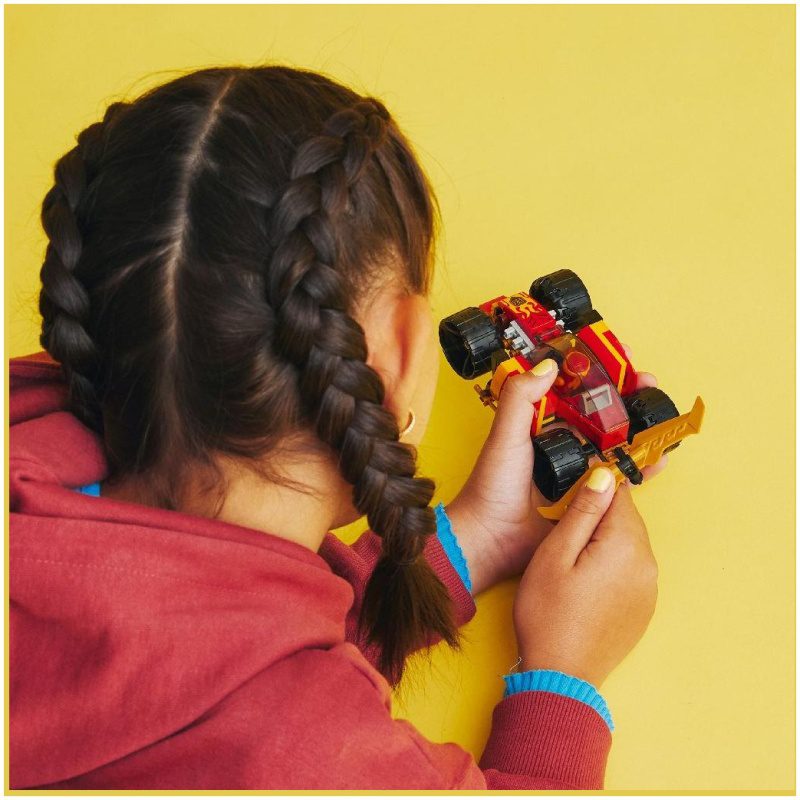 Pomozi Kaiju da prilagodi svoj superfora ninja trkaći automobil brzim, uzbudljivim pustolovinama u gradu NINJAGO! Uskoči u kabinu i provozaj se u terenskom vozilu s golemim gumama i spojlerom u obliku zlatnog krila. Kada staneš, zamijeni kotače i nadogradi ga u još snažniji i brži ulični trkač spreman za uzbudljive utrke! Možeš li pomoći Kaiju da postigne najveću brzinu i pobijedi?