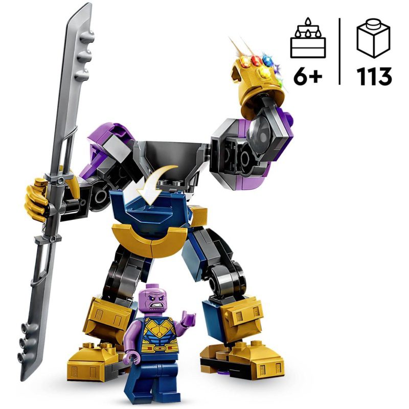 Stavi Thanosa u kabinu mehaničkog oklopa da najmoćniji superzlikovac u svemiru postane još opasniji! Ima pomične ruke, noge i prste, mač s dvije oštrice, rukavicu beskonačnosti i kamenje beskonačnosti – Thanosov mehanički oklop doista je nezaustavljiv!