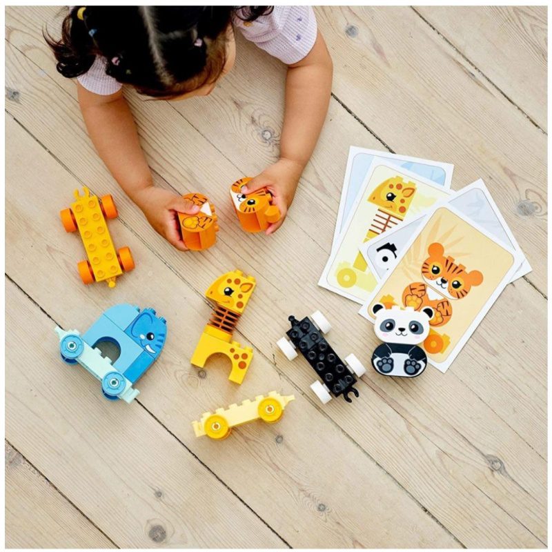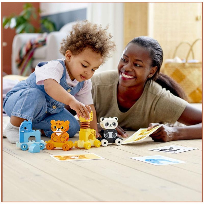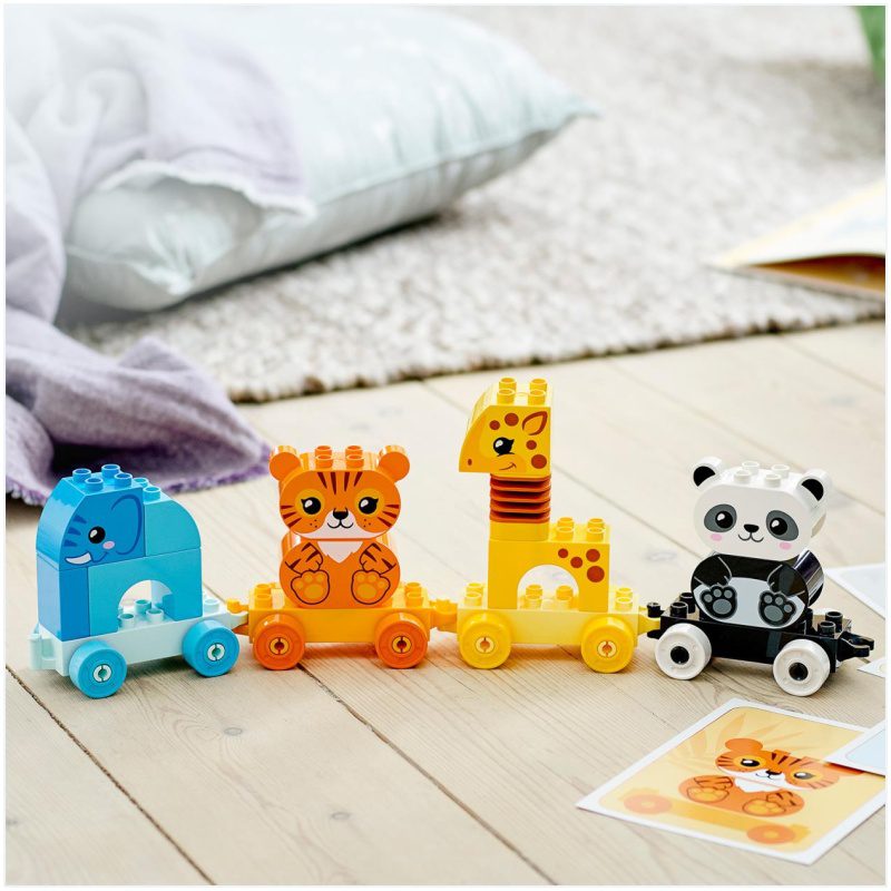 Mali ljubitelji životinja uživat će u igri sa slonom, tigrom, žirafom i pandom. Dok mališani sastavljaju i rastavljaju, slažu vagone, stavljaju životinje na njih i skidaju s njih pa stavljaju jednu na drugu, razvijaju fine motoričke vještine i otkrivaju čaroban svijet maštovite igre uloga. Inovativne značajke, kao što je vrat žirafe koji se klima, čine igru ovom edukativnom igračkom još zanimljivijom.