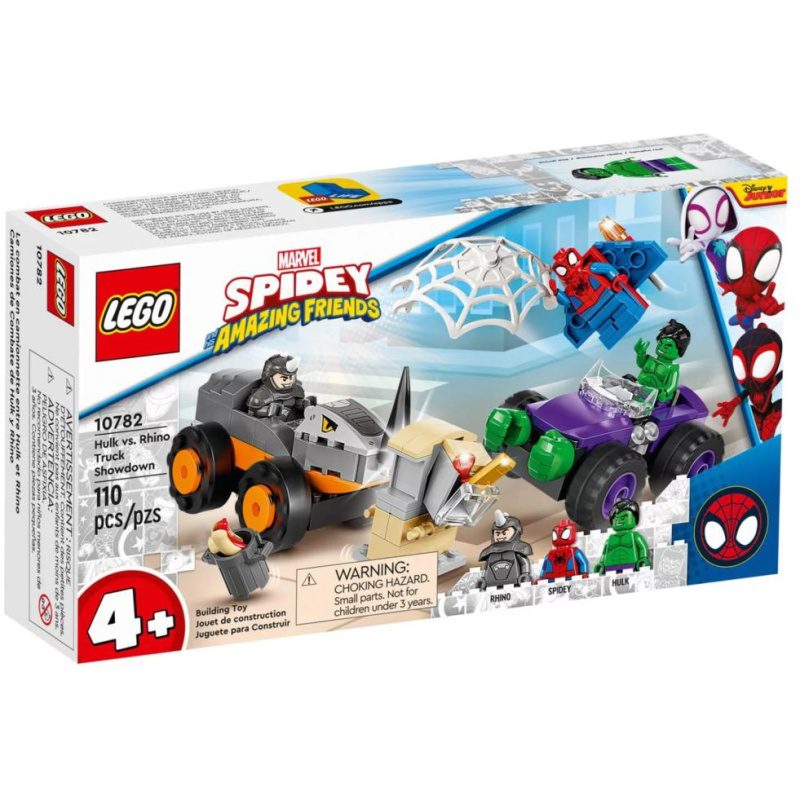 Komplet za slaganje LEGO Marvel Spidey And His Amazing Friends Obračun Hulka i Rhina u terencima (10782) daje superjunacima od 4 godine i starijima priliku da sjednu za upravljač i pojure u borbu protiv zlikovca. Djeca glume u scenama nadahnutima televizijskom serijom kanala Disney+ i pomažu Spideyju i Hulku da osujete Rhinove planove da opljačka banku. Djeci će se sigurno svidjeti borbena vozila u kolekcionarskom kompletu igračaka za slaganje. Sva čudovišna vozila imaju fora detalje: Rhinov terenac ima udarni ovan, a Hulkov goleme šake za razbijanje. Slaganje postaje mačji kašalj Djeca brzo mogu početi slagati komplete igračaka 4+. U ovom dolaze dvije baze kamiona, pa se djeca brzo počinju igrati. Ne moraju ni složiti cijeli komplet prije početka igre jer se u svakoj vrećici nalaze model i lik. Slaganje je jednostavno zahvaljujući postupnim slikovnim priručnicima, čak i za djecu koja još ne znaju čitati. I odrasli im se mogu pridružiti te prenijeti znanje o slaganju i pomoći malim obožavateljima Spider-Mana da postanu majstori graditelji.