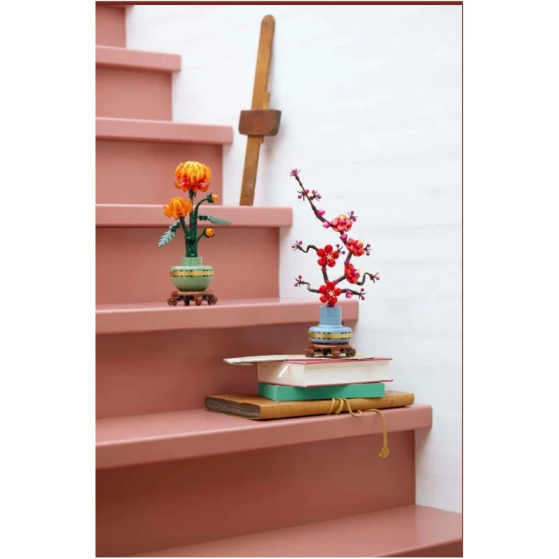 Ova detaljna replika, sa pokretnim listovima i laticama, prikazuje živopisni narančasti cvijet u pupoljku, cvatu i punom cvatu, a dolazi s pastelno-zelenom lončanicom ukrašenom zlatnom trakom i postavljenoj na postolje od imitacije drva. Jednostavan za sastavljanje, model krizanteme idealno će se uklopiti u svaki prostor i može se izlagati uz druge setove iz LEGO kolekcije za botanički asortiman (prodaju se odvojeno).
