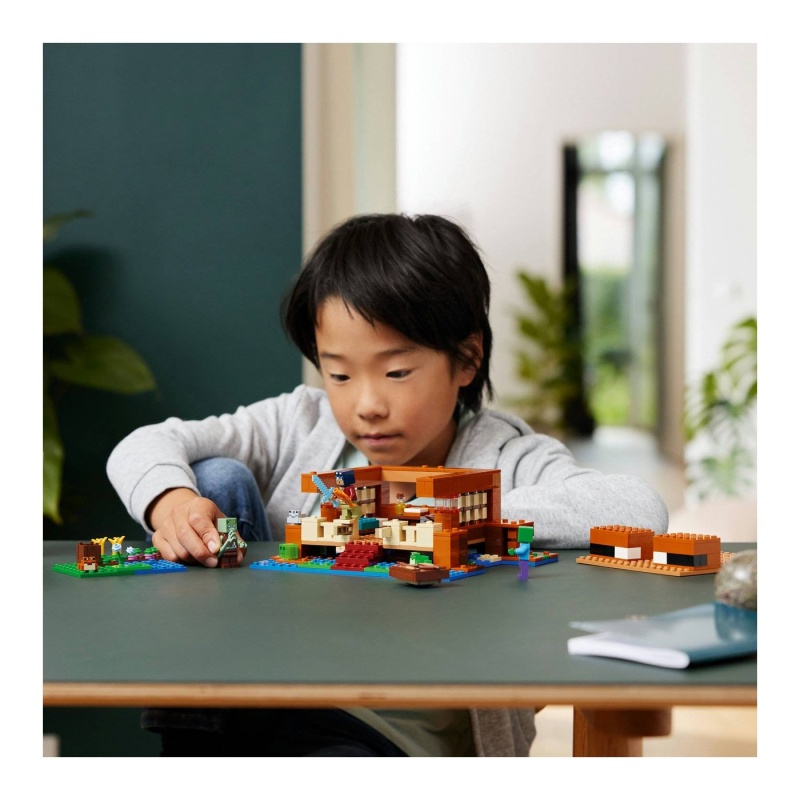 Lego Kuća Žaba 21256 nije običan set; to je prilika za ljubitelje Minecrafta da dožive omiljenu igru na potpuno nov način. Glavna atrakcija ovog seta je žabolika kuća, koja ne samo da fascinira svojom izvanrednom arhitekturom, već i nudi beskrajne mogućnosti za igru. Borba sa zombijem i utopljenikom u močvari dodaje dodatni sloj uzbuđenja i izazova. Ovaj set je savršen za samostalnu igru, potičući djecu na razvijanje svojih vještina rješavanja problema i kreativnog razmišljanja.