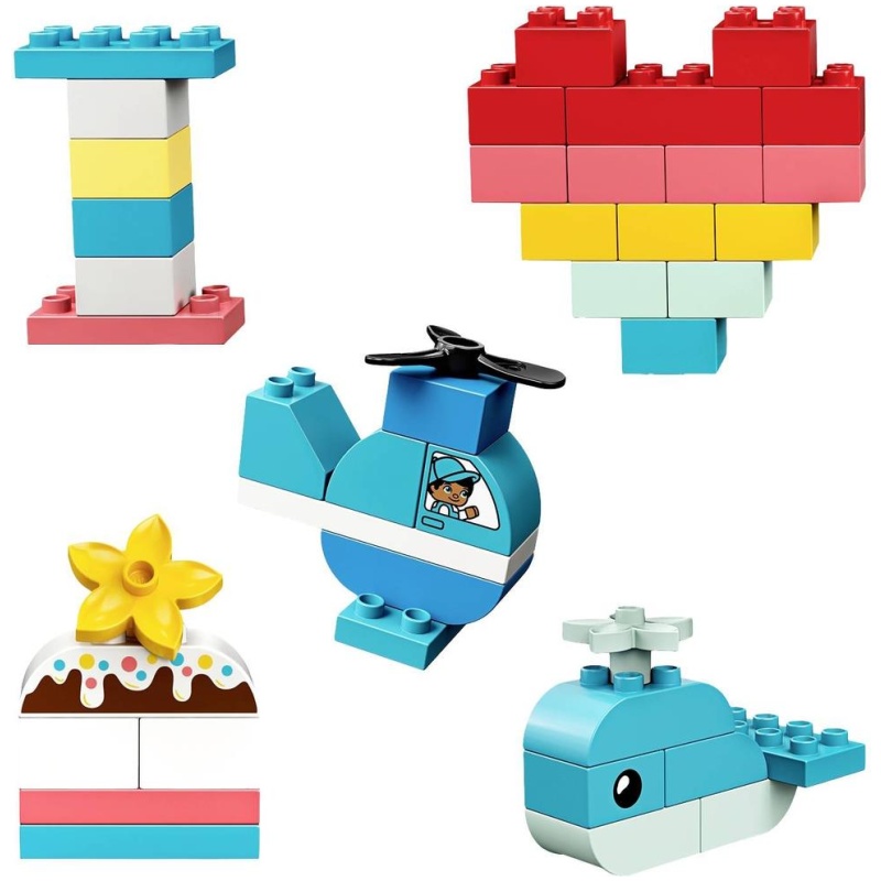Ova uzbudljiva mješavina LEGO DUPLO kocki pruža mnoštvo ideja i inspiracije! Dok roditelji i mališani grade, igraju se i ponovno grade, ovaj maštoviti edukativni set će potaknuti kreativnost kod djece i pružiti razvojne beneficije koje će trajati cijeli život. Otkrijte kreativnost vašeg djeteta s ovim stimulirajućim početnim setom. Mališani jedva čekaju da uhvate u ruke te kocke prilagođene njihovim potrebama i počnu graditi. Jednostavne upute osiguravaju da igra mašte počne odmah. U sklopu seta nalaze se kuća, sladoled, kit, cvijet, helikopter i patak. Svaki jednostavan model pruža puno sadržaja za razgovor i ulogu u igri. Kreativna zabava nastavlja se kada djeca miješaju kocke i grade vlastite kreacije. Izgradite vrijedne vještine uz prvi LEGO DUPLO set. LEGO DUPLO igračke omogućuju slobodnu igru i izražavanje za buduće graditelje. S prepoznatljivim scenama, poznatim likovima i kockama prilagođenim predškolcima, inspiriraju djecu predškolske dobi s neizmjernim entuzijazmom za igru i učenje.