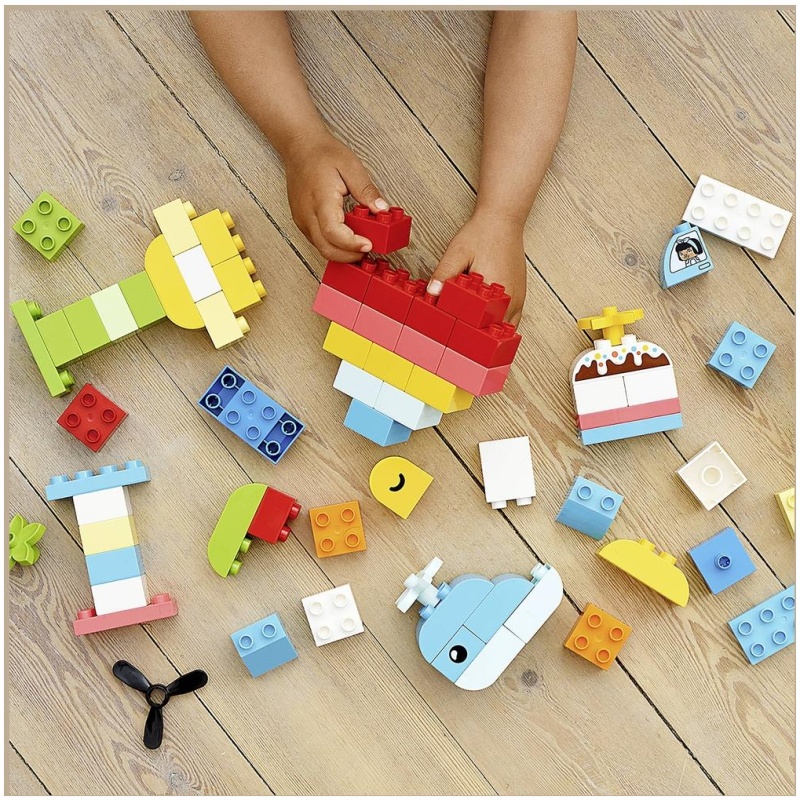 Vaš mali graditelj će voljeti ovu šarenu mješavinu LEGO DUPLO kocki. S 15 zabavnih modela i beskrajnom kreativnošću u slobodnom oblikovanju, ovaj svestrani set pruža nevjerojatne mogućnosti za maštovitu igru za svakog mališana. Uključuje 80 šarenih, djeci prijateljskih kocki koje se mogu izgraditi u 15 jednostavnih i zabavnih modela, uključujući kuću, sladoled, kita, cvijet… Dok djeca grade, igraju se i maštaju, naučit će vještine koje će trajati cijeli život. Podijelite zabavu i učenje sa svojim malim graditeljem. Počnite s 15 jednostavnih modela. Dajte im da stave LEGO slova “Volim” ispred svojeg omiljenog modela (hoće li to biti sladoled?). Zatim im pomozite da stvaraju vlastite kreacije! Sa slatkim, šarenim modelima napravljenima od sigurnih, lako za rukovanje kocki, ova edukativna igračka za predškolsku dob je savršen poklon za Božić, rođendan ili bilo koji drugi dan za dječake i djevojčice od 18 mjeseci nadalje. Svaki od 15 početnih modela je sladak objekt koji će mališani prepoznati iz svakodnevnog života. Kombinirajte dijelove s drugim LEGO DUPLO setovima za još više kreativnih mogućnosti. Ne trebaju baterije. Građenje zabave pokreće mašta djece – tako da nikada ne prestaje! Ručne igračke koje ne koriste baterije potiču fine motoričke vještine i rješavanje problema kod djece, a istovremeno potiču kreativnu igru u njihovim rukama. Otvorite kutiju i odmah počnite igrati. Jednostavne upute za roditelje i malu djecu pokazuju kako sastaviti jednostavne modele. A kada djeca počnu graditi, zabava nikada ne prestaje! LEGO DUPLO setovi su odličan poklon za predškolce. Potiču slobodnu igru i pružaju razvojne koristi kroz realne scenarije, prepoznatljive likove, slatke životinje i zabavu bez granica. LEGO DUPLO igračke za predškolsku dob ispunjavaju najviše industrijske standarde, što osigurava da su lako dostupne, postavljene i rastavljene za male ruke – i tako je bilo od 1969. godine! U The LEGO Group-u, mi ispituje, pritiskamo, savijamo, zagrijavamo, grebemo i rastežemo LEGO DUPLO kocke i dijelove kako bismo osigurali da svaki DUPLO set zadovolji najviše globalne standarde sigurnosti i kvalitete.