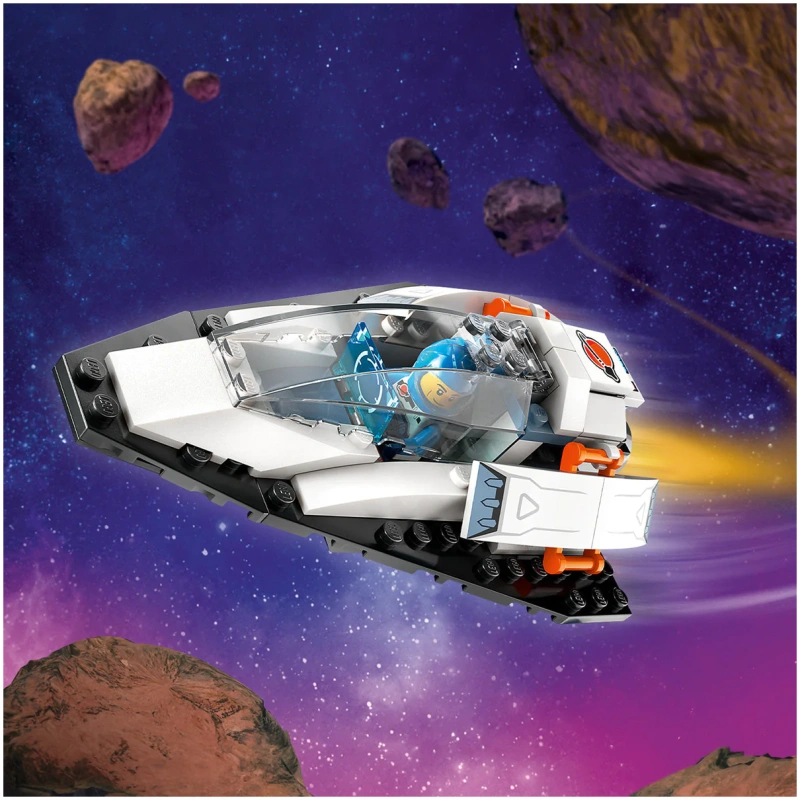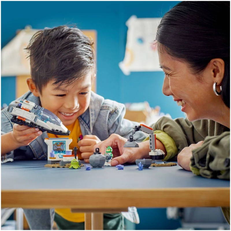 S LEGO City Svemirskim brodom, vaša djeca će moći letjeti kroz beskrajne prostore svemira i otkriti tajanstveni asteroid. Set dolazi s modelom svemirskog broda koji je savršeno opremljen za svaku svemirsku misiju. Dva prizora na asteroidu – laboratorij i područje iskopavanja – pružaju brojne mogućnosti za istraživanje i igru.