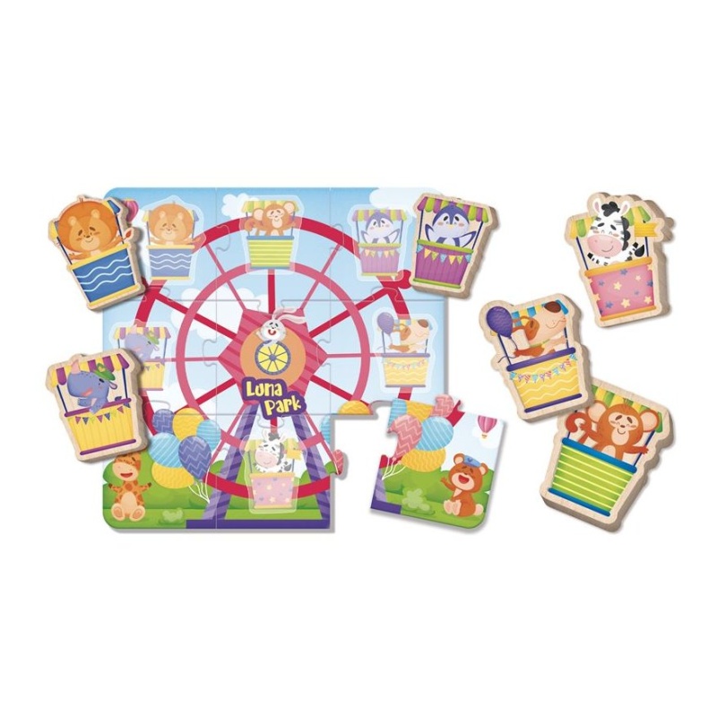 Zamislite osmijeh vašeg djeteta dok sastavlja ove puzzle i pritom stvara svoj vlastiti mali Luna Park. Svi detalji su pažljivo osmišljeni kako bi svaki trenutak igre bio poseban. Upute su jednostavne, a oblik i boje drvenih životinja dizajnirani su tako da zaintrigiraju i najmlađe pustolove. Ova igračka postavlja temelje za ljubav prema učenju kroz igru.