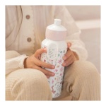 Ono što ovu bočicu čini posebnom jest njezin prekrasan dizajn s motivima cvjetova i leptirića, čime donosi dodatnu radost svakom djetetu. Estetski privlačna, bočica potiče djecu da sa sobom rado nose svoju vodu gdje god krenuli, stvarajući zdrave navike od malih nogu. Osim toga, lako se održava, što roditeljima omogućava brzo i jednostavno čišćenje nakon svake upotrebe.