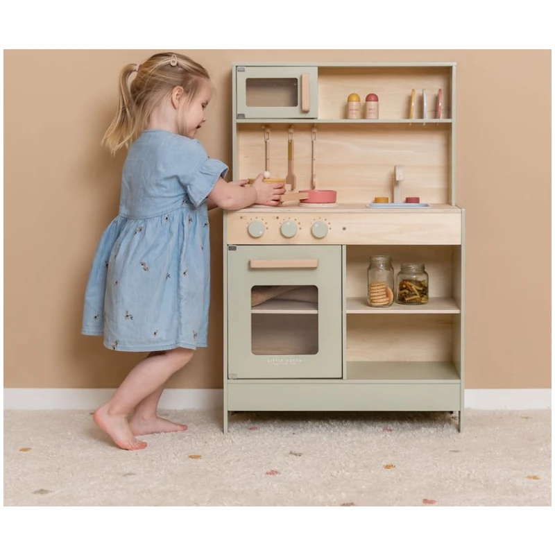 Vaša mala kuharica sada može unijeti čaroliju kuhanja u svoj svijet s ovom prekrasnom drvenom kuhinjom Little Dutch. Ova potpuna kuhinja omogućuje kuhanje, pečenje i prženje te pruža mnogo mogućnosti za kreativnu igru.
