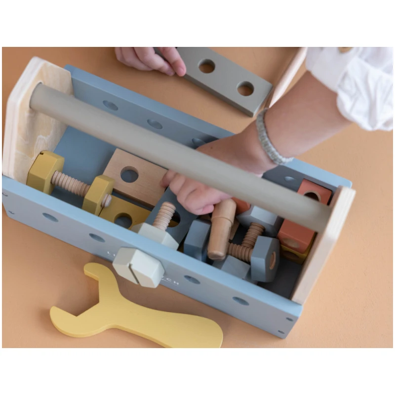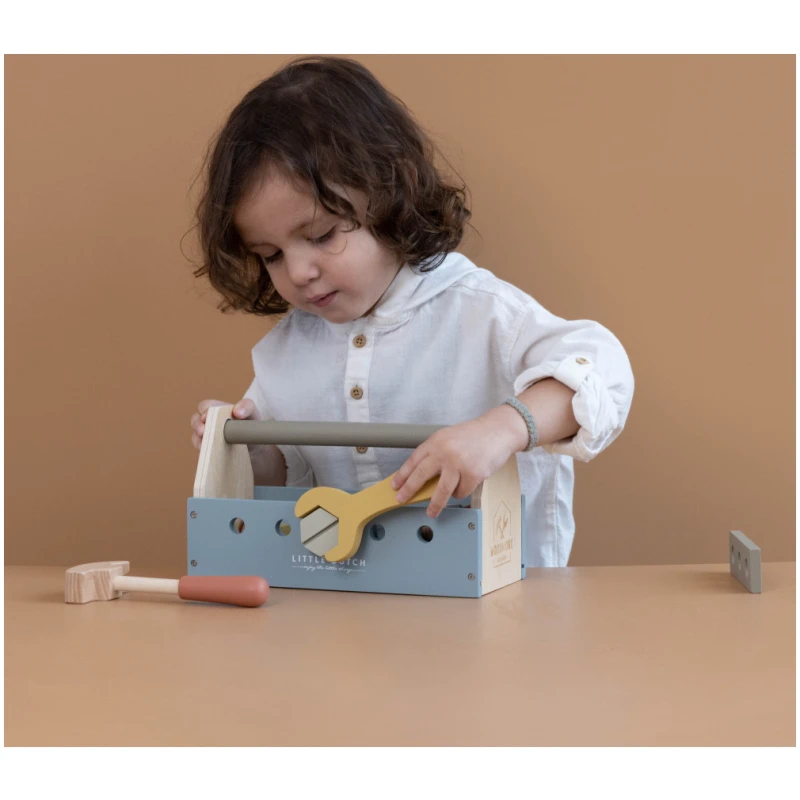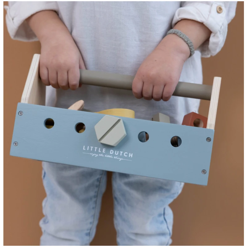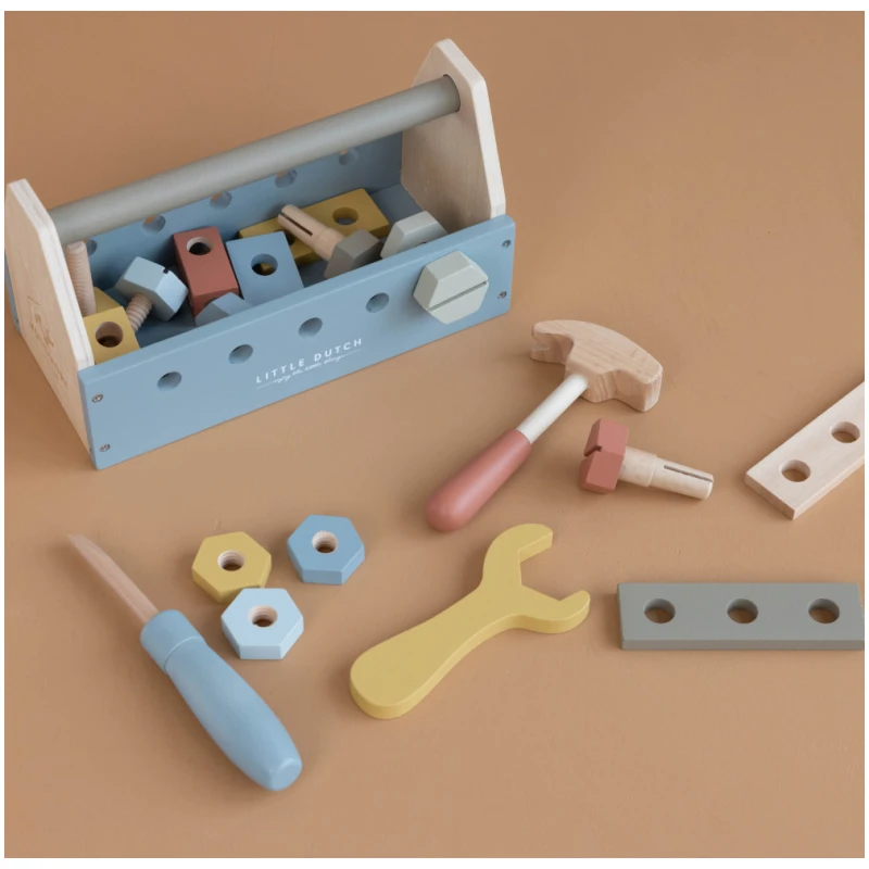 Vaš mališan voli pomagati u poslovima oko kuće? To je sada moguće uz drvenu kutiju s alatom od Little Dutch-a!