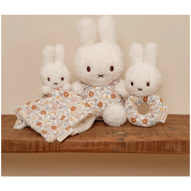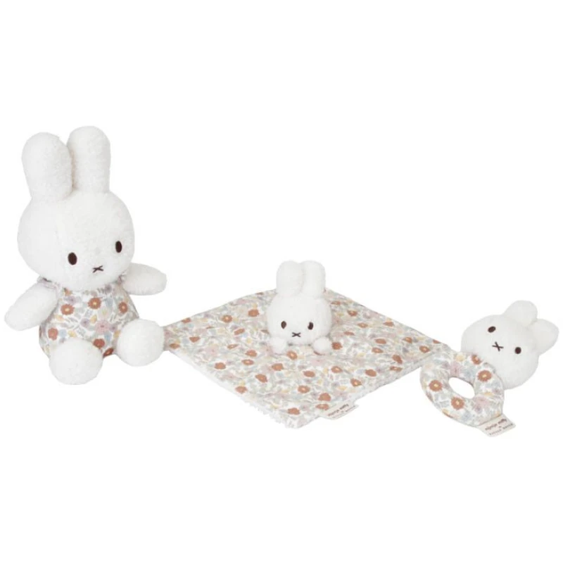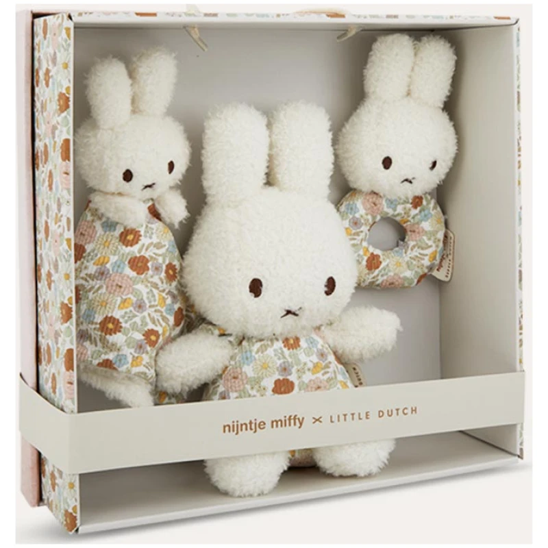 Ova darovna kutija je jednostavno neodoljiva! Tri najslađe Miffy igračke su umotane u prekrasnu kutiju i čine savršen dar za novorođenče ili baby shower. Kombinacija Miffy i Little Dutch igračaka pruža najbolje od oba svijeta: najslađi mekani zeko koji postoji, u prekrasnom dizajnu Vintage Malih Cvjetova. Kutija sadrži tri mekane stvari koje su idealne za grljenje, maziti i igranje. Miffy plišana igračka je ikonična i svako dijete bi trebalo imati barem jednu. Kad se ide spavati, super mekana platnena igračka pruža krajnju utjehu. A zvečka je zabavna kad je vrijeme za igru. Sve je zajedno umotano u prekrasnu kutiju pokrivenu Vintage Malim Cvjetovima. Radost za darivanje!