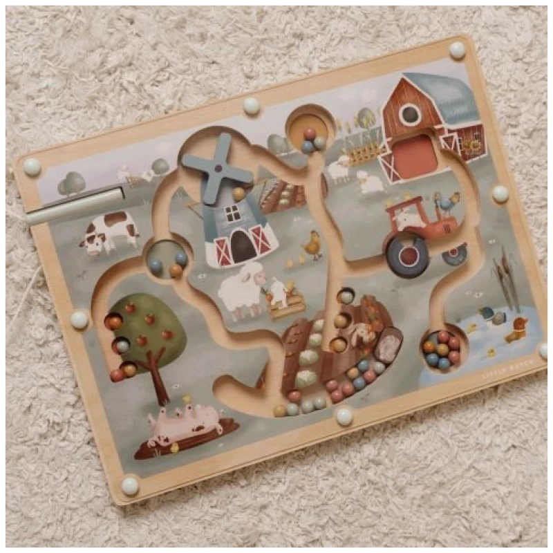 Da, pridružujem se avanturi na farmi! S Little Dutch Magnetnim Labirintom Little Farm, djeca će imati priliku istraživati i razvijati svoje motoričke vještine na zabavan način. Ovaj labirint je napravljen od drveta i obojen je bojama koje su sigurne za naše mališane.