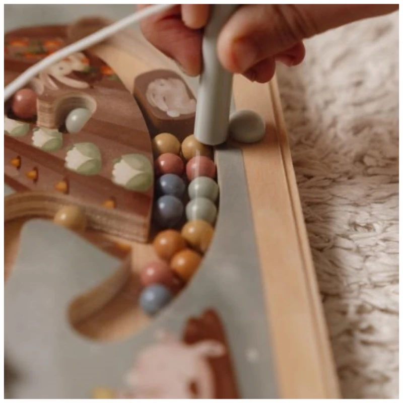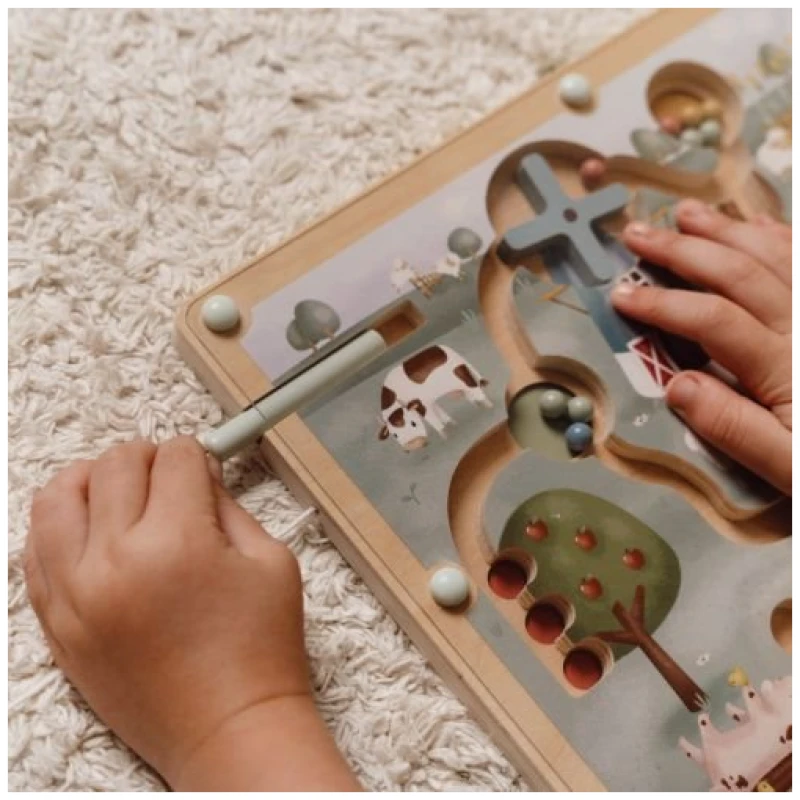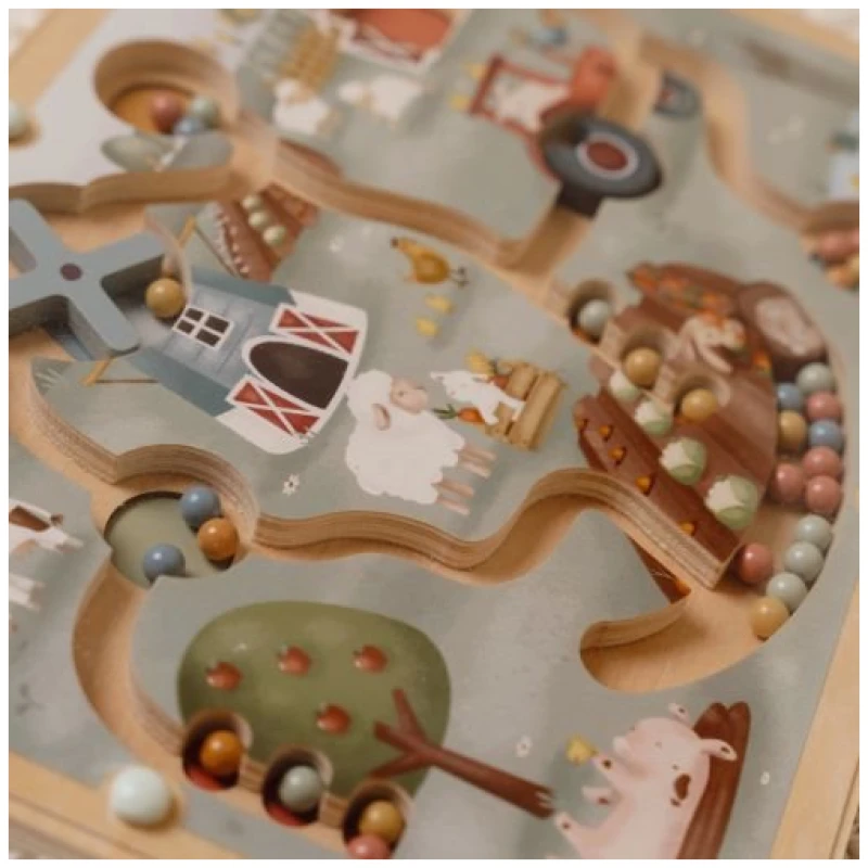 Ovaj labirint omogućuje djeci da stvaraju vlastite priče i avanture na farmi. Na primjer, mogu premjestiti sve plave kuglice u ribnjak, a dvije crvene kuglice u stablo jabuke. Mogu koristiti maštu i otkriti nove načine za igru s ovom zabavnom igračkom.