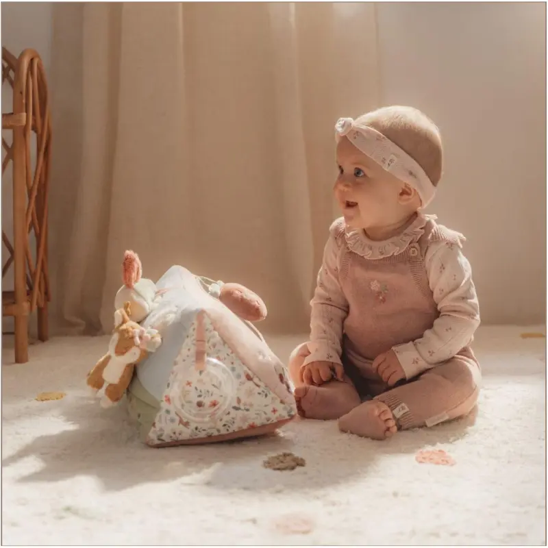 Ovaj vrsni i zanimljivi trokut aktivnosti odvest će vašu malu na čarobno putovanje vrtom dok je na trbuhu. Putem će biti toliko toga za istražiti: od pucketavih latica cvijeta do malenog ogledala za samootkrivanje. S igračkama koje potiču igru i teksturama koje će oduševiti vašu bebu, ova igračka će očarati sva osjetila i potaknuti djetetovu maštu.