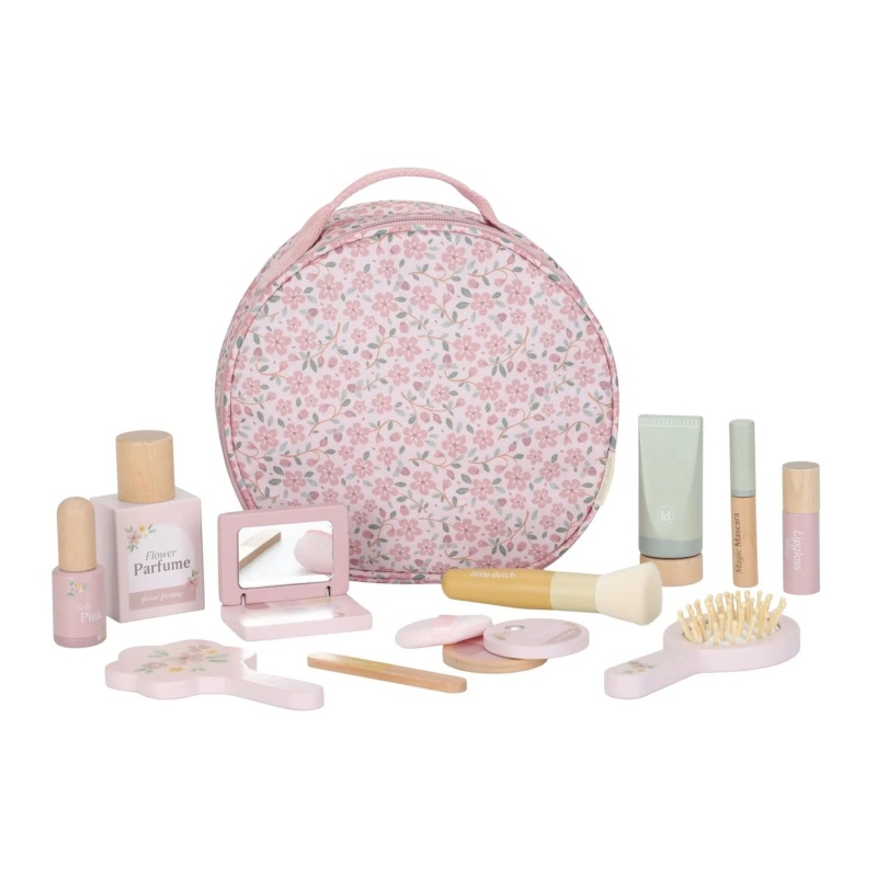 Što izdvaja ovaj set od drugih? Njegova jedinstvena kombinacija kvalitete i dizajna. Izrađen od kvalitetnog drveta i tekstila, Little Dutch Set koristi “child-friendly” boje na bazi vode, što ga čini potpuno sigurnim za vaše dijete. Njegova mekana cvjetna torbica nije samo lijepa, već i praktična, omogućujući lako prenošenje i skladištenje svih “kozmetičkih” proizvoda. Od ručnog ogledala do bočice parfema, svaki komad je pažljivo dizajniran da oduševi i potakne satima kreativne igre.