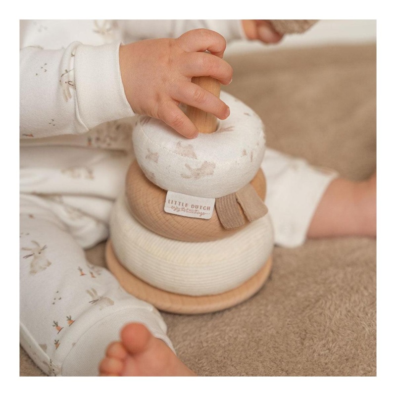Uronite u svijet igre i učenja s Little Dutch Stacker Baby Bunny! Ova vesela i nježna slagalica kombinira drvo i mekane tkanine, pružajući vašem djetetu sigurno i zanimljivo iskustvo igre. Svaki prsten priča priču, svaki pokret pomaže malim ručicama da otkriju nove vještine.