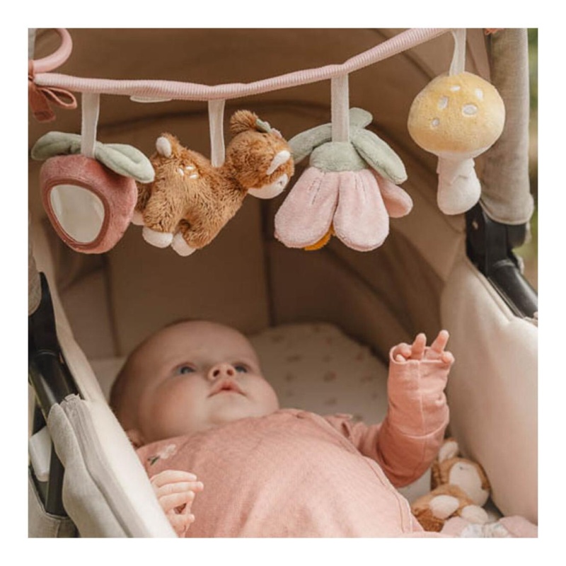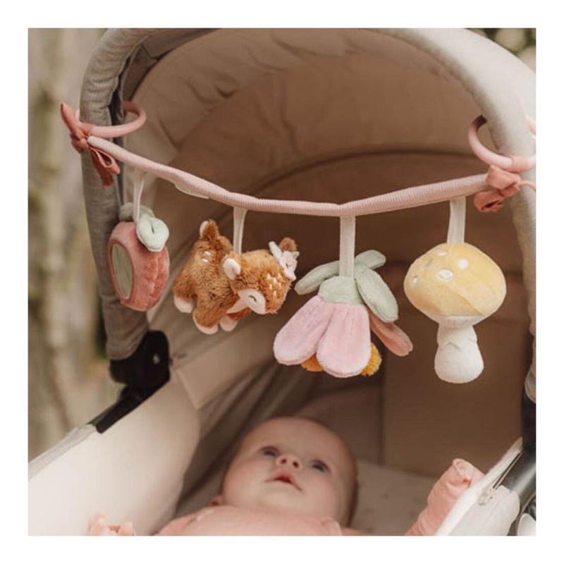 Pretvorite svaku šetnju u čarobnu avanturu s nježnom i šarenom trakicom za igru iz kolekcije Fairy Garden. Ova očaravajuća igračka potaknut će bebina osjetila kroz zabavne zvukove, mekane teksture i pokretne elemente koji pomažu u razvoju koordinacije i fine motorike.