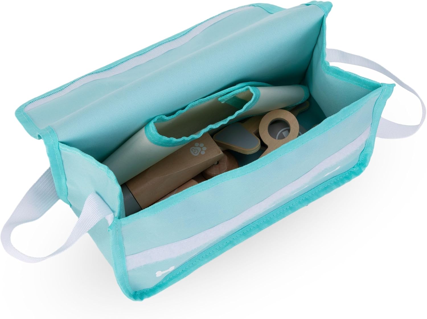 Bilo da ste kod kuće, u parku ili na putovanju, mali veterinari mogu pružiti najbolju njegu svojim plišanim pacijentima. Set uključuje sve što je potrebno za igru veterinara: stetoskop, termometar, šprice, pincete i još mnogo toga. Svaki alat je pažljivo kreiran kako bi bio siguran i prilagođen dječjim rukama, potičući kreativnost i samopouzdanje.
