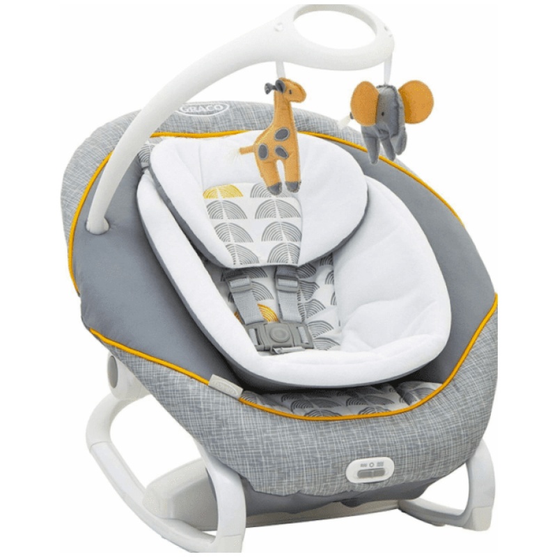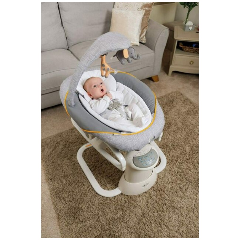 Kvalitetna Graco ljuljačka namijenjena je djeci od rođenja do 9 mjeseci. Posjeduje udobno, prostrano sjedalo. Ljuljačka se može podesiti u više različitih brzina i načina ljuljanja i umirujuće vibracije, a pri ljuljanju vašem djetetu možete pustiti neki od različitih prirodnih zvukova ili melodija za potpuno uživanje. Kada se ljuljačka skine sa baze može se koristiti kao kompaktna i prenosiva ležaljka. Ljuljačka posjeduje sigurnosni sistem u 5 točaka kopčanja. Navlaka se može skinuti i prati u perilici.