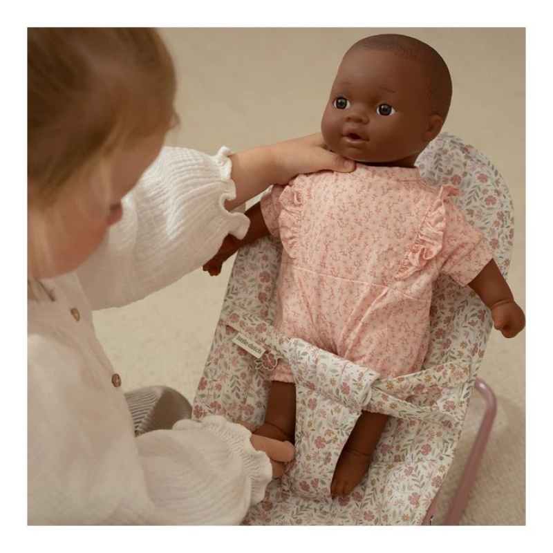 Ljuljačka Soft Flowers osmišljena je s posebnim naglaskom na sigurnost i udobnost. Njezin metalni okvir osigurava trajnost, dok mekani jastuk pruža osjećaj ugode. Sigurnosni pojas čvrsto drži lutku na mjestu, omogućujući mališanima da se s povjerenjem prepuste svojoj igri.