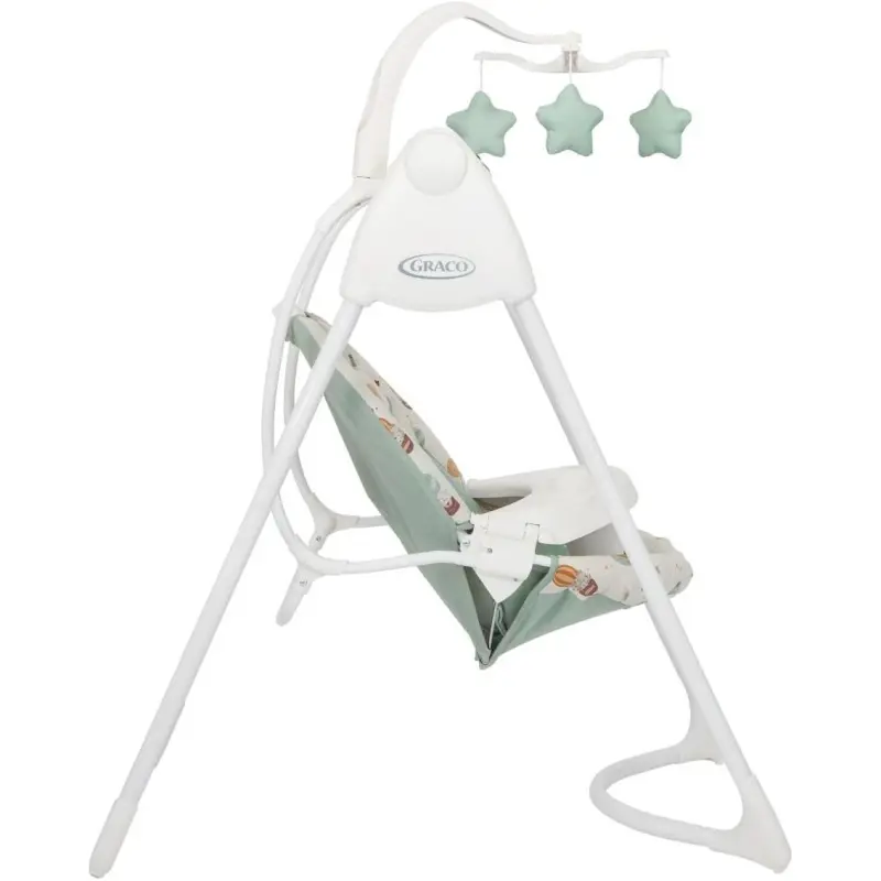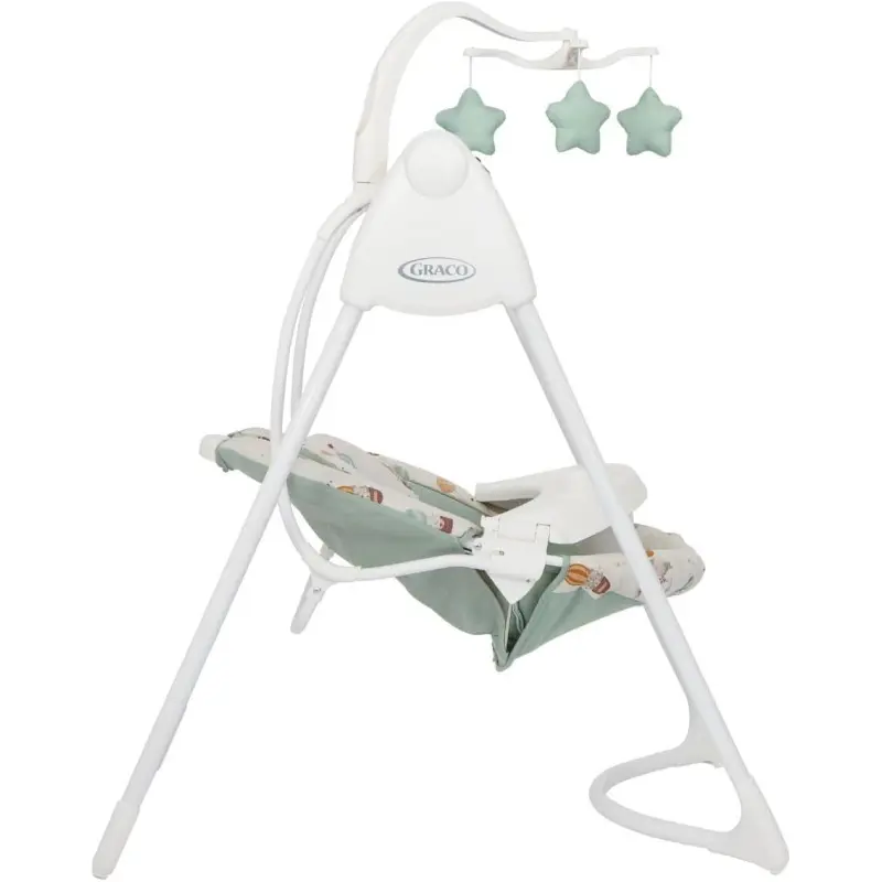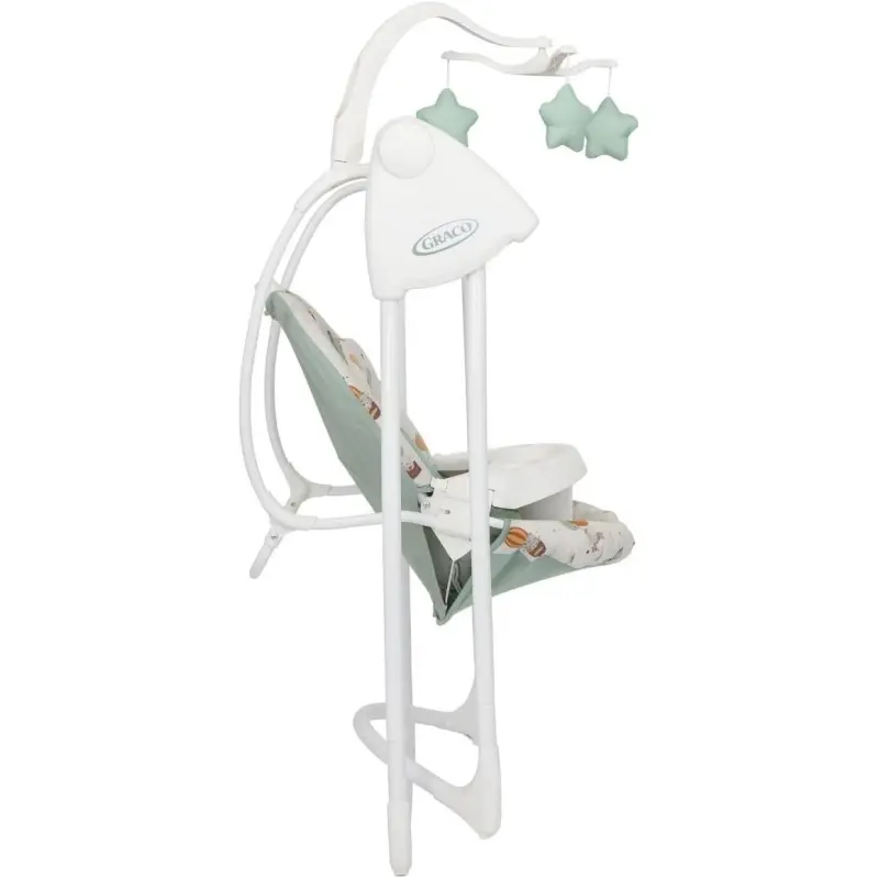Ali tu nije kraj – Lovin Hug Up & Away ljuljačka također dolazi s 10 klasičnih melodija i zvukova prirode koje će uljepšati svaki trenutak vaše bebe. A tu je i vrtuljak s plišanim igračkama koje pružaju vizualnu stimulaciju i potiču razvoj senzornih vještina.