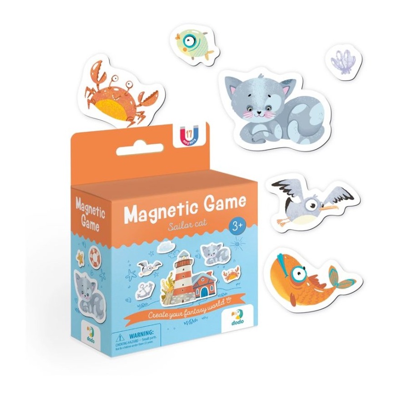 Uz magnetnu igru “maca mornar, ovaj edukativni set, namijenjen djeci od 3 godine i više, idealan je alat za razvoj kreativnosti i mašte vašeg djeteta. Uz 17 šarmantnih magneta, svaki s jedinstvenim motivom iz mačjeg nautičkog svijeta, vaše dijete može kreirati beskrajne priče i scenarije.
