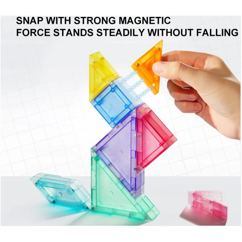 Ova slagalica nudi nevjerojatnu sposobnost stvaranja trodimenzionalnih struktura, što će obogatiti maštovite svjetove vaše djece. Kroz igru s Magnetic Tangramom, razvijat će prostornu svijest i vizualno razmišljanje, pomažući im da razumiju složene koncepte na jednostavan i intuitivan način.