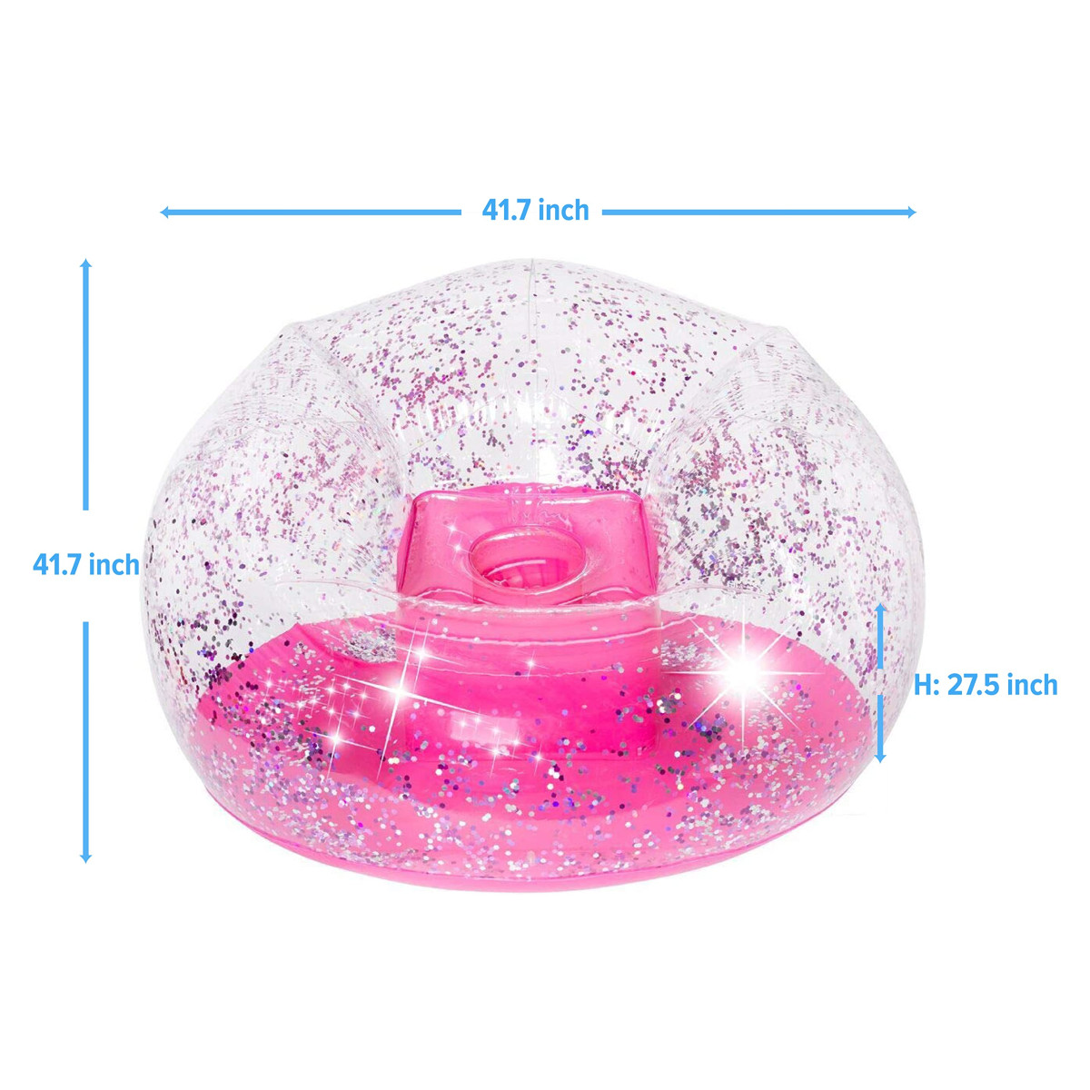 Unesite zabavu u svakodnevicu s ovom trendi stolicom na napuhavanje prepunom ružičastih konfeta! Lagana i prenosiva, savršeno se uklapa u svaku dječju sobu, dnevni boravak ili dvorište – gdje god poželite udoban kutak za opuštanje. Bez muke je možete premještati iz prostorije u prostoriju i tako svakom prostoru dati osobni pečat.