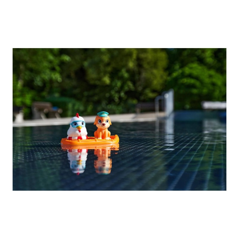 Ovaj set, sastavljen od živopisno dizajniranog narančastog čamca i simpatičnih vinilnih figurica psa i kokoši, osmišljen je kako bi mališanima pružio ne samo beskrajnu zabavu već i priliku za razvoj njihovih finih motoričkih sposobnosti. Kako njihovi mali prstići s lakoćom postavljaju životinje na čamac, djeca se igraju i uče istovremeno.