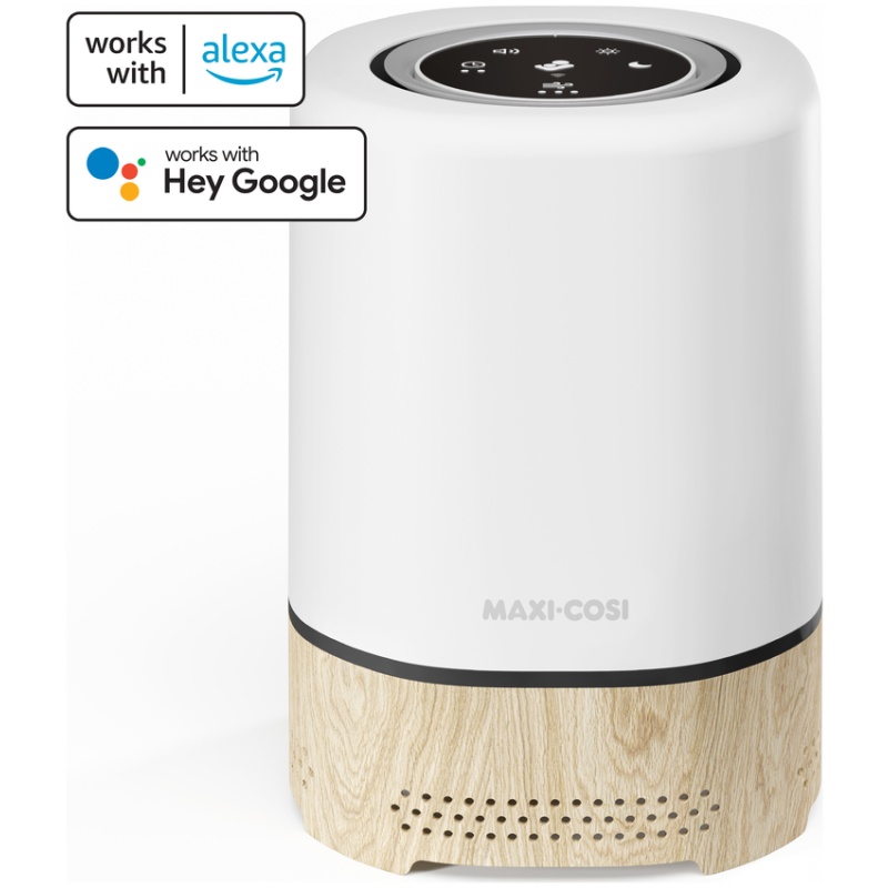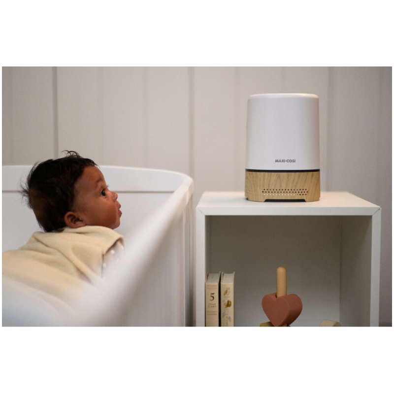 Zahvaljujući visokoučinkovitoj filtraciji HEPA13, Maxi-Cosi Clean uklanja 99,97% prašine, peludi i čestica u zraku. Podesivo noćno svjetlo i 4 umirujuća zvuka koje generira Clean omogućuju vam stvaranje mirne atmosfere u spavaćoj sobi prije spavanja. Svakom od ove tri funkcije možete upravljati gdje god se nalazili pomoću aplikacije za povezani dom Maxi-Cosi.